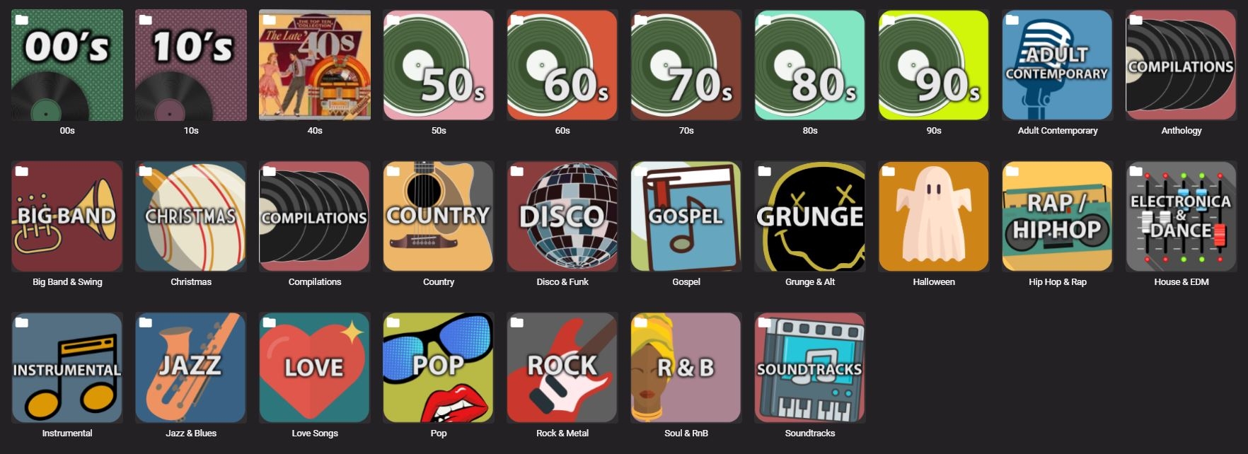 The structure is super basic. Music folder. Then the genre folder. So :