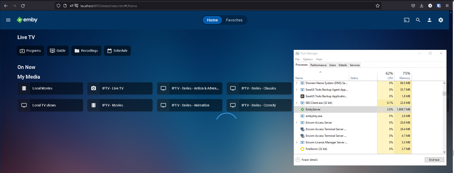BrianSDX2 3 Posted March 30, 2022 Author Posted March 30, 2022 Of course. To load this page Emby will only use about 3.0% of my CPU for 7 to 10 seconds. If it could use more than 3% this would happen almost instantaneously. Maybe this isn't a multi-core issue but a optimization issue for users that have large home pages. This is my fully loaded main page. Notice the scroll bar.