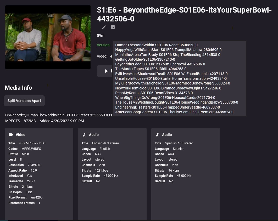 jcm@live.com 1 Posted April 27, 2022 Posted April 27, 2022 I'm a new Emby user but i am impressed with what i see so far. I am using Emby to stream recorded TV shows that were recorded with SageTV and for the most part, it works fine. However, one of the TV shows plays something different than what the title shows. Looking at the file in Embv, there is a drop down Version option that displays several shows. What is this? The version it is set to is the wrong show and the filename is wrong. How did that happen?