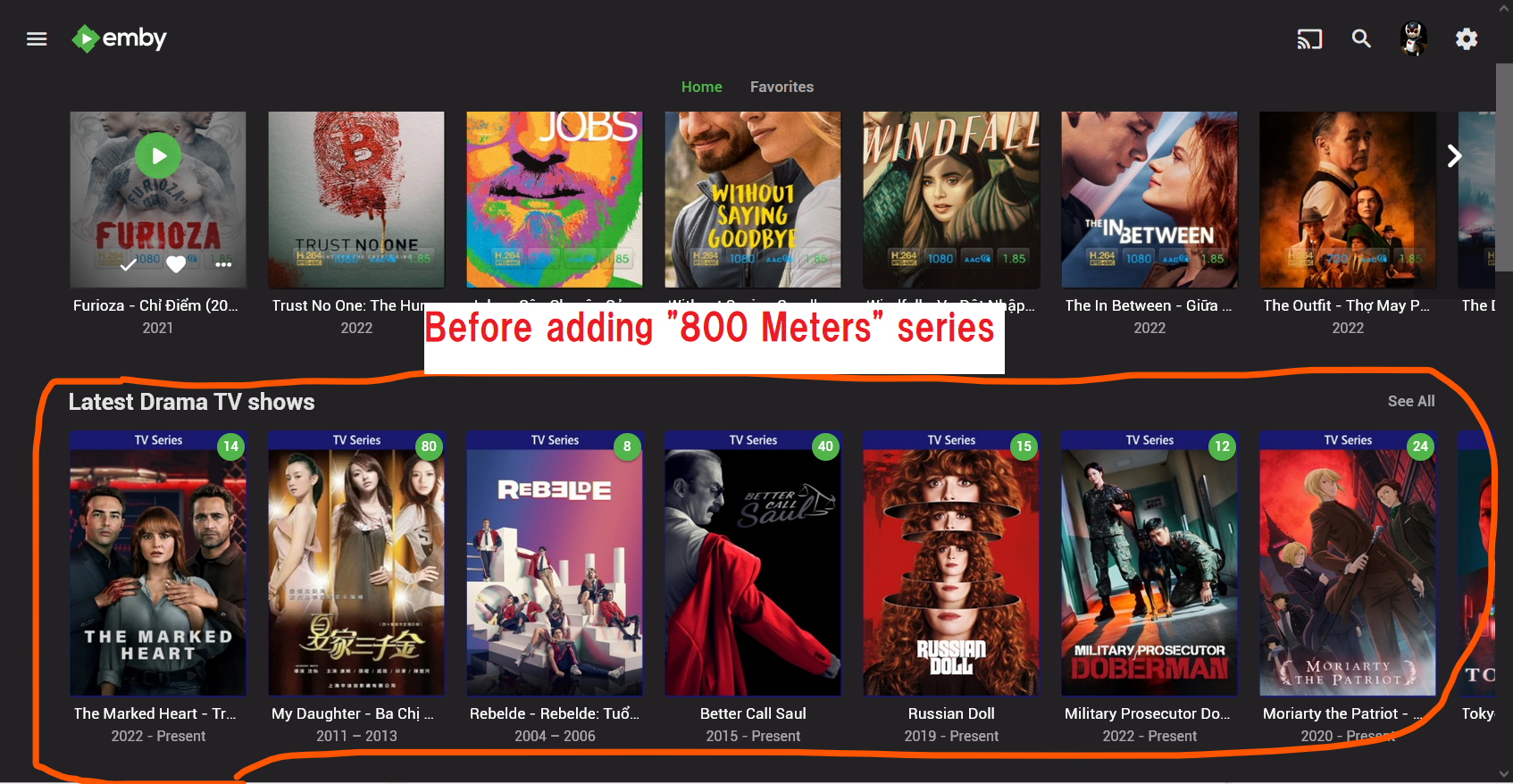 Ubuntu Emby server was crashed tv show folder when it's scanning "800 Meters (2022)" series.
