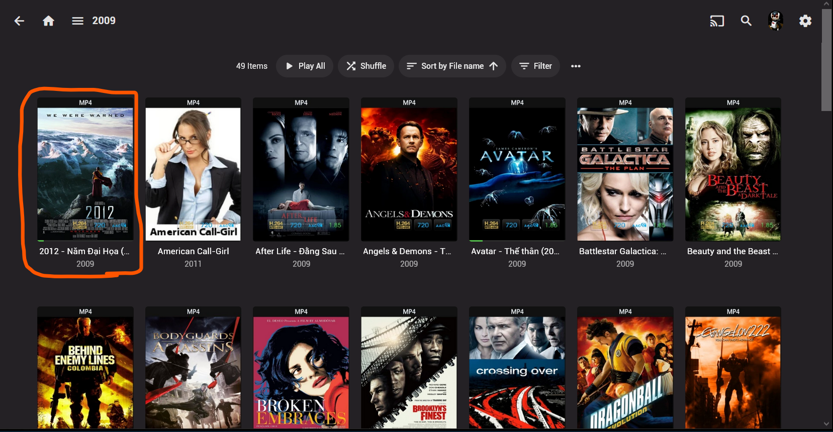 Actually, for Movies content, Emby server worked fine with "2012" movie.