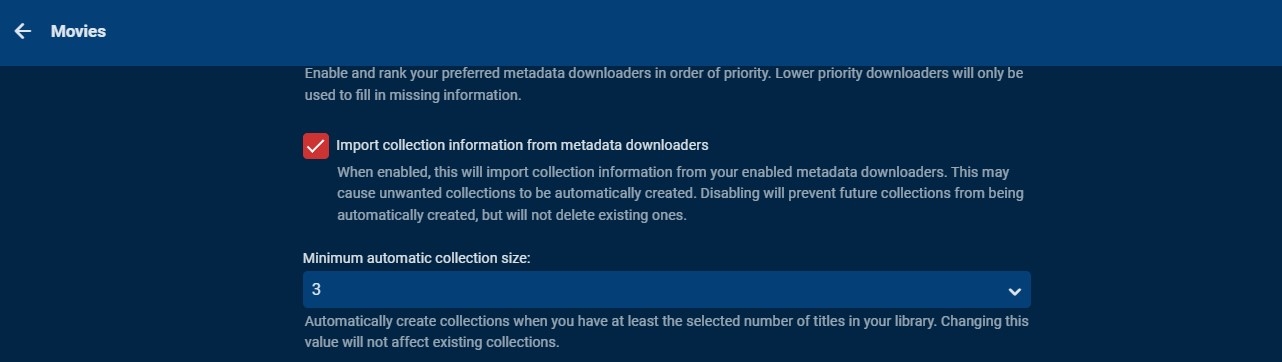 GrimReaper 4749 Posted May 19, 2022 Posted May 19, 2022 (edited) You'll have to Refresh Metadata for existing items, newly added content will be automatically added to collections. Also, pay attention on Minimum collection size, set it as low or high as you prefer. Edited May 19, 2022 by GrimReaper Cross-posted 1 1