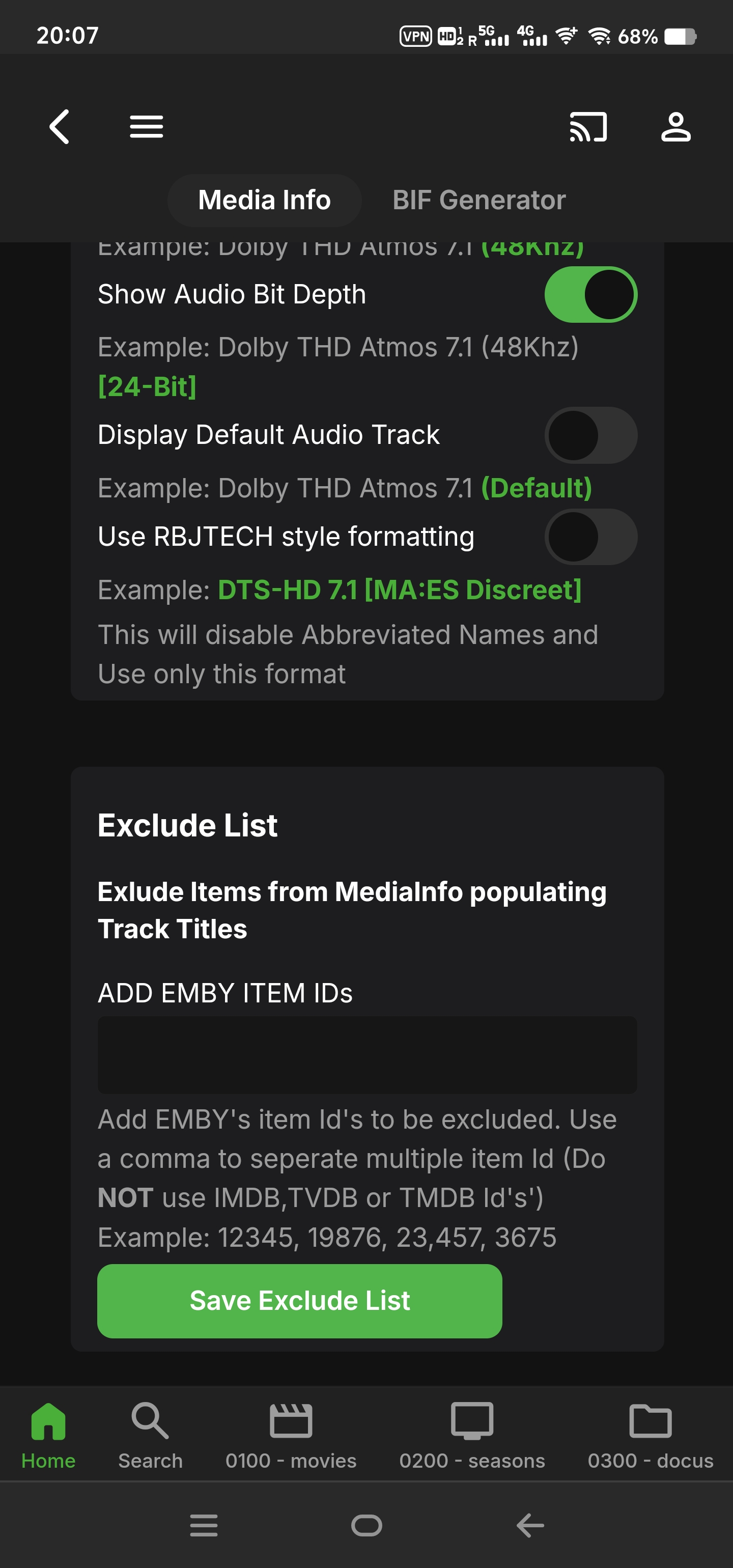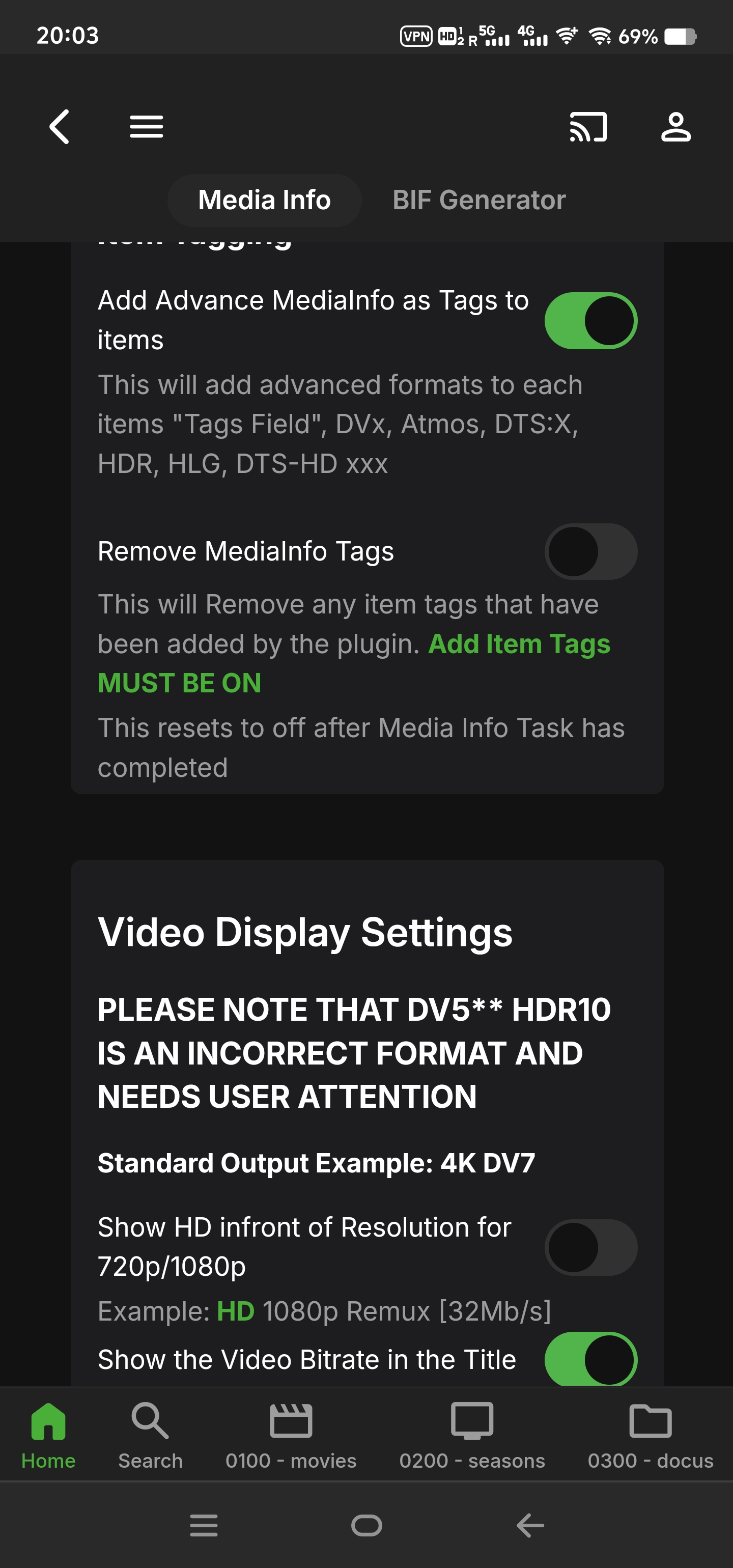 supermood 71 Posted May 14, 2024 Posted May 14, 2024 On 3/2/2024 at 11:29 AM, MrLinford said: Thank you for the credit. I'll take a look later. Mr. Linford. your guide is incredible!!! many thanks for that!!!! with the infos on page 37 i was able to set it up. emby is Running on a linux docker and i thought i will never be able to see the correct audio codecs... Now the log tells me that something positive happened? but only for 3% any idea why? many thanks!!! 2024-05-14 18:38:37.747 Info Media Info: MKVPropEdit Process Version Check Completed with Exit Code: 0 2024-05-14 18:38:37.748 Info Media Info: MKVPROPEDIT VERSION IS 70 - CONGRATS..... THIS VERSION IS SUPPORTED!! 2024-05-14 18:38:37.748 Info Media Info: No. of Libraries selected is 3 2024-05-14 18:38:37.748 Info Media Info: Getting Folder(s) Items 2024-05-14 18:38:38.037 Info Media Info: Total No. of items in Library 4781 2024-05-14 18:38:38.196 Info Media Info: Actual Items to process = 133 2024-05-14 18:38:38.196 Info Media Info: PERFORMING MEDIAINFO EXTRACTION 2024-05-14 18:38:38.266 Info Media Info: MEDIAINFO TITLES Completed for 133 Videos 2024-05-14 18:38:38.267 Info TaskManager: Advanced Media Information Completed after 0 minute(s) and 0 seconds 1