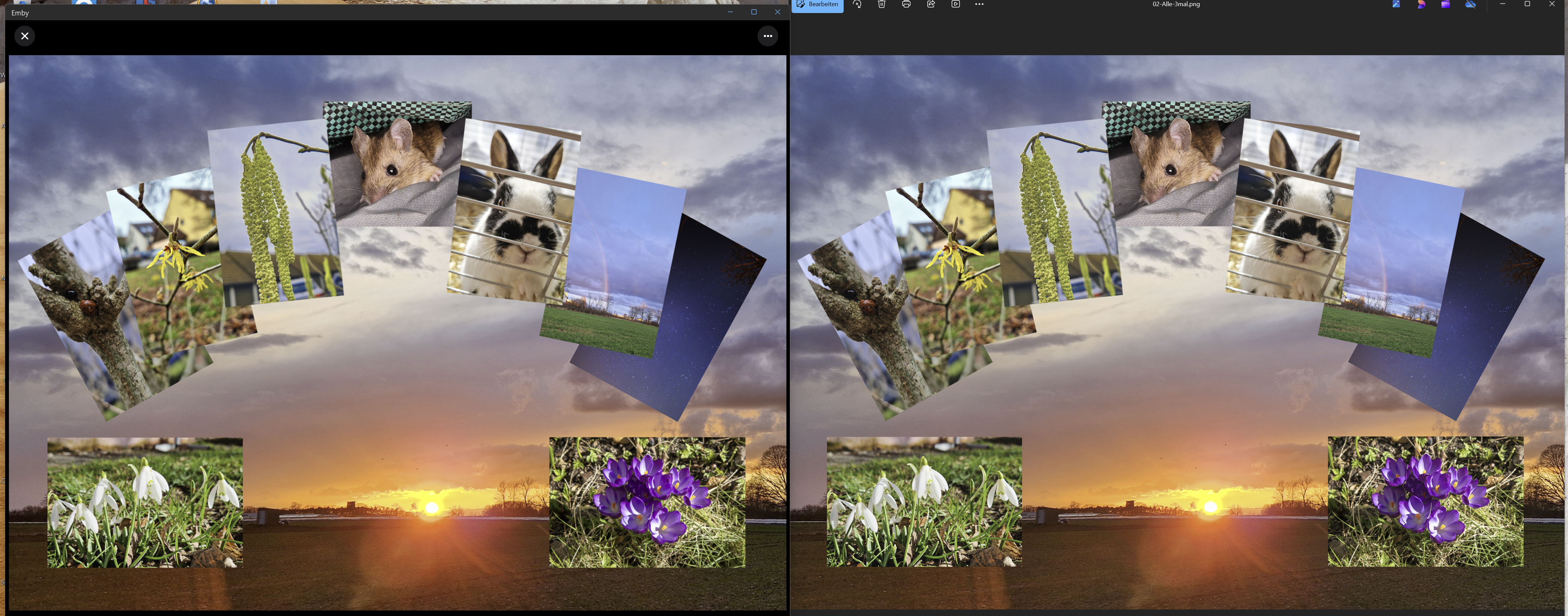 ruedi 5 Posted April 4, 2025 Posted April 4, 2025 Hi Luke - I think I catched the main issue now ... When exporting my photos from Lightroom I typically use the ProPhoto RGB color space. Putting this through the resizer will lead not only to new borders it finally influences the color space, too. From what I saw in the meanwhile, the EMBY resizer is transforming the color space from ProPhoto RGB to sRGB which finally leads to the loss of color quality, depending on the algorithm which is used to reduce the colors. Typically the color numbers wont match in this case (two times reduced colors) and the result is a bad picture quality. To prevent from such questions (like from me) it would be great if you could push your colleagues to state in the documentation about the supported color space for photos. This is the same reason for the Windows 11 "Photo Viewer"-Effect: opening the picture is fine (the viewer can display the ProPhoto RGB) but editing results in a real bad result. Reason: "Photo Viewer" can only use sRGB for editing a picture. We talked about this problem before. Not sure if you really can do something here - except document what is possible. I did now two independent exports one for EMBY one for further use An export to JPEG or PNG with the extremely restricted sRGB leads to acceptable (not brillant :)) results. Having a bit more colors would be great ... best regards RUE 1
