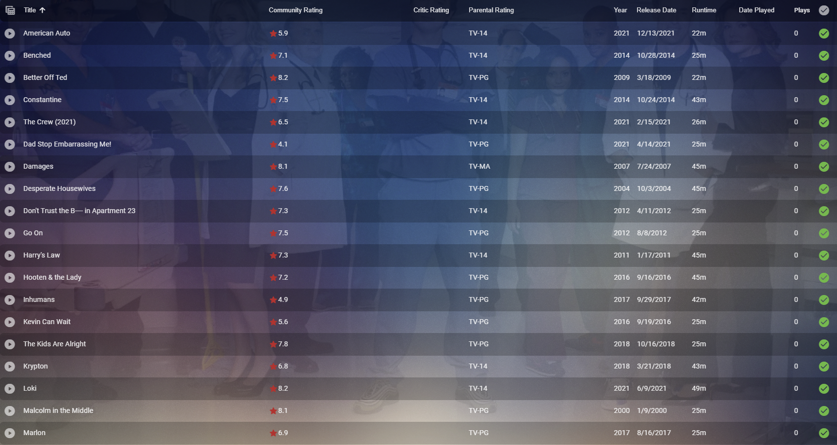 MBSki 1114 Posted June 10, 2022 Author Posted June 10, 2022 @cayars When you get the SQL query, take a look at the other library.db and compare The Crew (the only played series that filters correctly) to another played series like Abbot Elementary to see what values are different. I would hope there's some obvious difference between the 2.