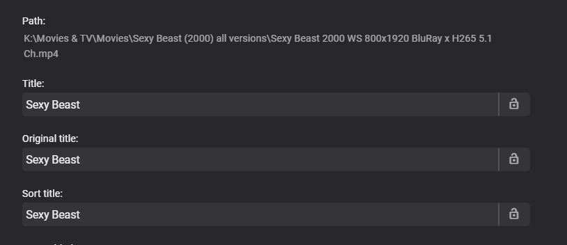 musicmafia 38 Posted June 9, 2022 Author Posted June 9, 2022 34 minutes ago, seanbuff said: The likely reason the multi-version didn't work is because each file version needs to follow the parent folder name, appended by the "- version info" So in your case: Sexy Beast (2000) all versions\ Sexy Beast (2000) all versions - HD MKV x264.mkv Sexy Beast (2000) all versions - HD HEVC x265.mkv Sexy Beast (2000) all versions - HD MP4 x264.mp4 ...or something similar. Your screenshot above will only affect the way the movie is displayed in the library, not the version names. Thanks Sean! I followed the naming convention above on all the files in that folder and now I see a dropdown menu that shows the versions! Thanks! 1 1