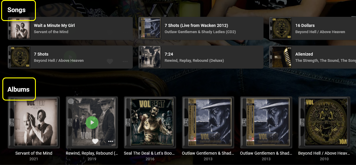 Happy2Play 9783 Posted June 11, 2022 Posted June 11, 2022 3 hours ago, JsinFate said: Do you know of any way to show all of an artists albums as default instead of songs on top and albums at the bottom? It only affects the web client, but you can uses some custom css in Custom CSS box. div.details-additionalContent { display: flex; flex-direction: column; } div.artistSongsSection {order: 2;} Or just this to remove songs div.artistSongsSection {display: none;} 1