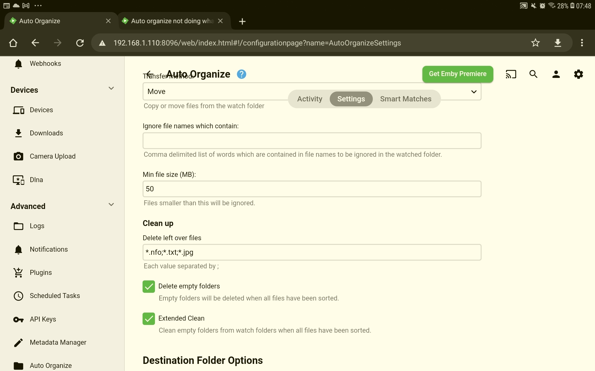 TJ-emby 2 Posted June 12, 2022 Author Posted June 12, 2022 Hi Chef, My Tablet is a Samsung SM T580 with a Screen size: 10.1 inches and Display resolution: 1920 x 1200. I have upped my PC resolution and it works fine now. When I access it through my phone it handles it perfectly in a nice condensed format but I'm unable to scroll either up or down. After my Movie run through it didn't delete the *.nfo; files I set it to delete nor did it delete the empty folders that didn't have any .nfo files in them. I will chuck through my TV series folders in the morning and will update you then. Again, love the V2.0 so far and will happily continue using it. Thank you.