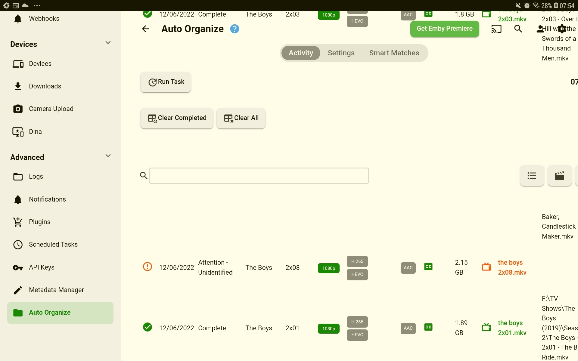 TJ-emby 2 Posted June 11, 2022 Posted June 11, 2022 Hey guys. As The Boys is currently on series 3, I am adding S1 and 2 to my server...or at least trying to. When I put the correctly formatted named files in my watched folder for the Auto Organize plug in to sort, it doesn't recognize them so I point it to The Boys through the search and....it works for that selected episode but then ignores it for the others and changes it to the Trailer Park Boys, renames them all incorrectly but then moves them to the correctly named The Boys folder. Can someone recreate the problem and maybe point me in the right direction to rectify this? Many thanks in advance. James