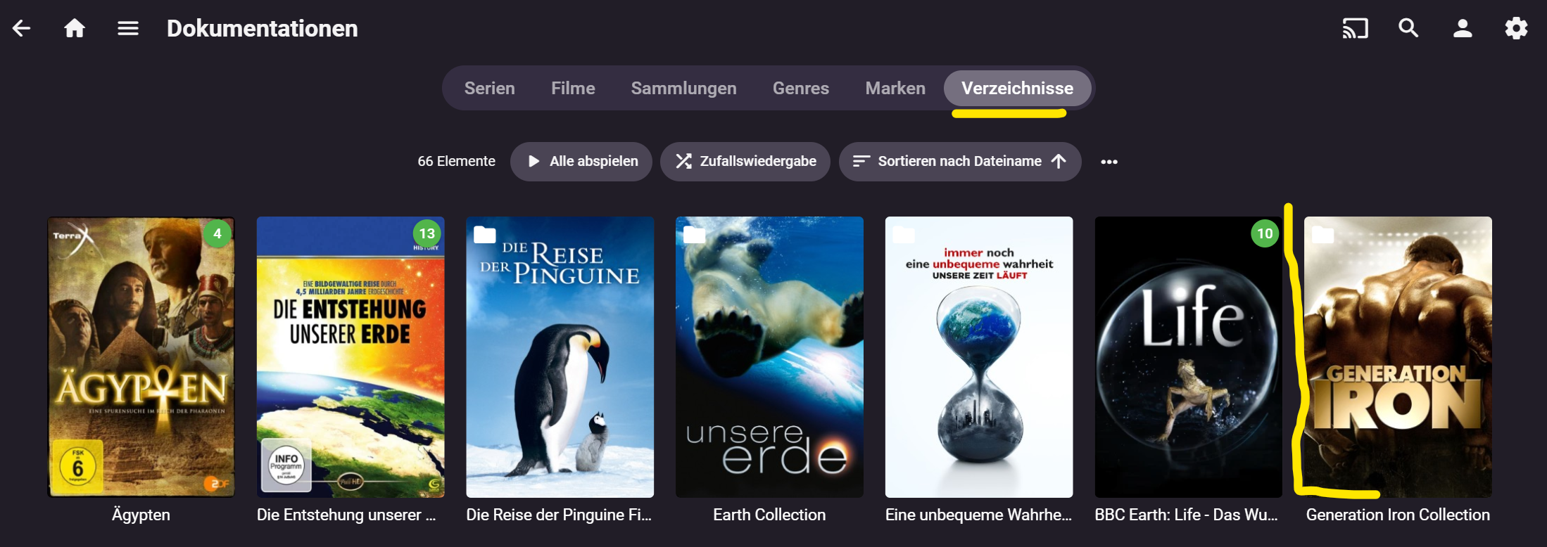 Seger 123 Posted June 16, 2022 Author Posted June 16, 2022 14 minutes ago, Luke said: What is Verzeichnisse? is that Folders? Yes. In Folders it jumps right in, with mixed libraries. I, for example, don't need a folder view at all, especially with documentaries, you only need series, films and a summary of the two. At the moment, this takes place in the Folders section. If necessary, you can also design an individual library type for documentaries. .