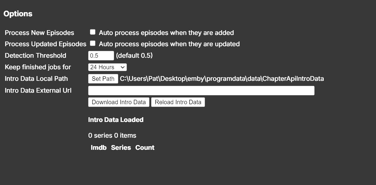 TeamB 2438 Posted September 12, 2024 Author Posted September 12, 2024 1 hour ago, podonnell said: Hi, Just getting this plugin and have a few questions: 1) I had Premiere, is this the same Detect Intros feature that was running 'behind the scenes', or a new method? Do I have to worry about interferencing with what is built in if not? On the Options page there are options for processing new episodes, but that is off. So I'm guessing the built in Intro detection is different, and to use this I would need to enable these checkboxes? 2) I got this because one of my shows did not seem to have its intros detected. I went to the Intro Detect page but it seems to want me to submit intro data. It mentions a file or a DB -- is the 'Intro Data External Url' what that is referring to that I may need to load? If there is documentation on this that can help with the above, that would be wonderful. Thank you! the first post of this thread should cover most of the info you are asking about.