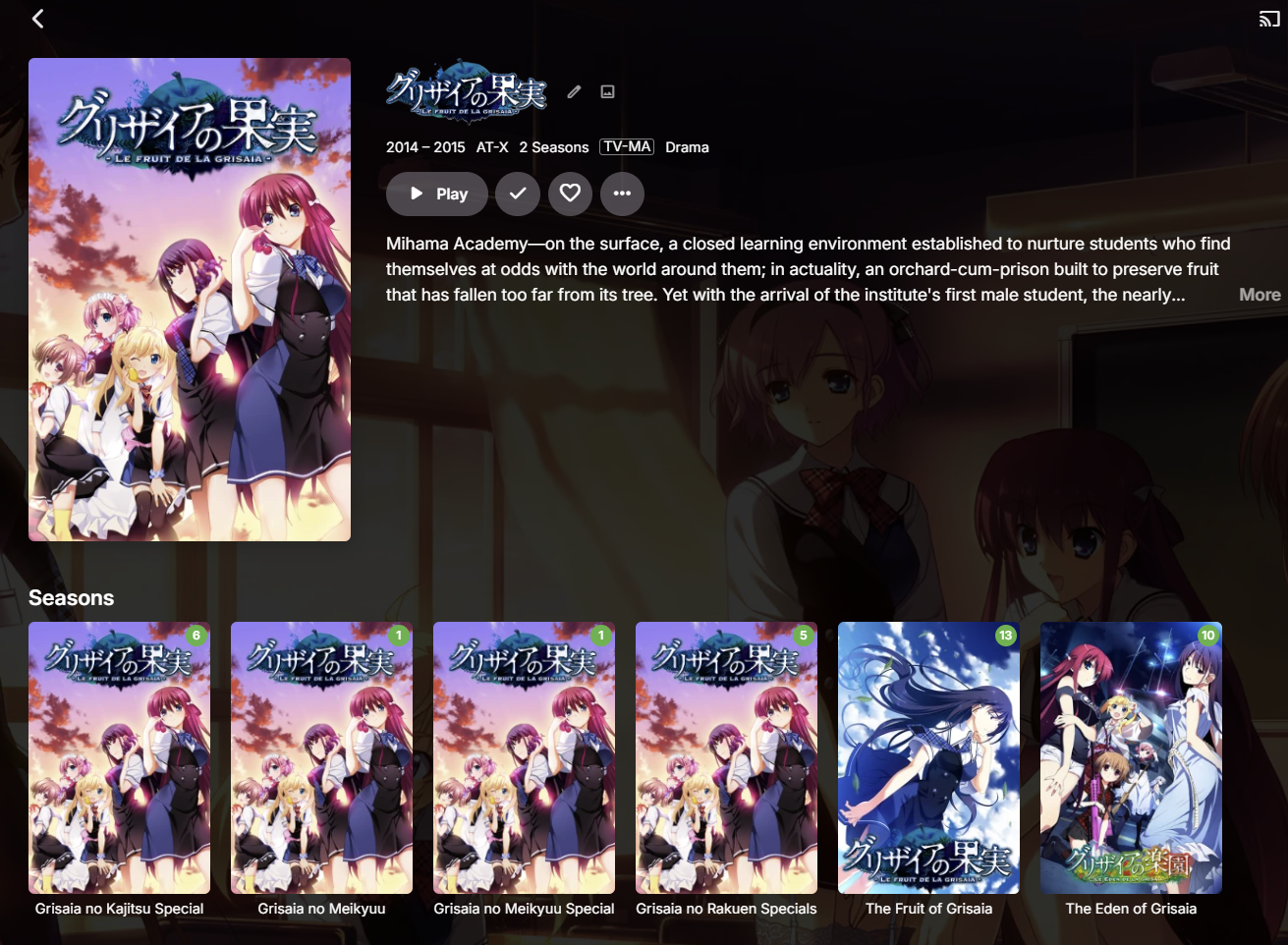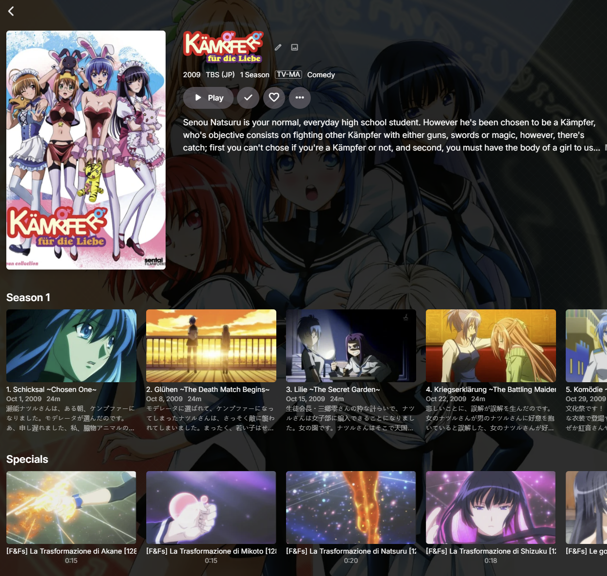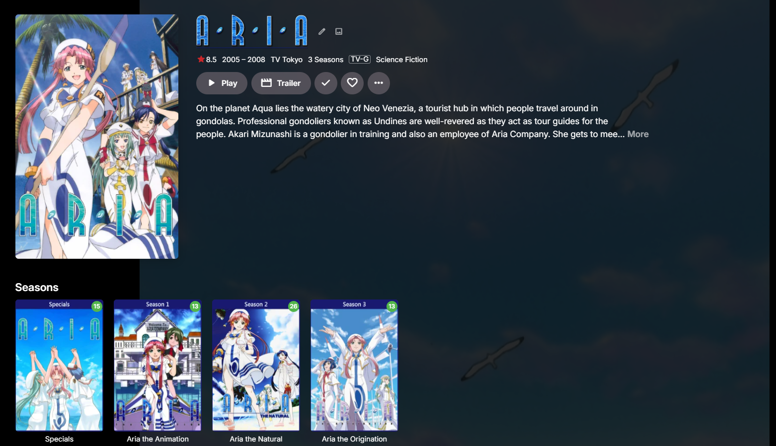 xena990 8 Posted December 27, 2025 Posted December 27, 2025 (edited) Here is my setup for Monogatari and Aria. I just use Sonarr to import them with TVDB metadata Because i use TVDB metadata, it will automatically put the specials episode in the order that is needed for watching. If it does not have that metadata on tvdb, just use myanimelist and put the episodes to air after specific episode. Edited December 27, 2025 by xena990