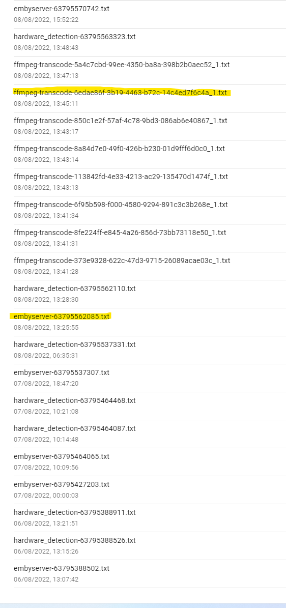 Luke 42077 Posted August 8, 2022 Posted August 8, 2022 25 minutes ago, aussiedropbear said: I think this may be a log when it decided to stop for the remote session my father in law was using. thanks John ffmpeg-transcode-6edae86f-3b19-4463-b72c-14c4ed7f6c4a_1.txt 32.16 kB · 2 downloads Hi, can you please attach the main emby server log as well? the file name will start with embyserver- Thanks !