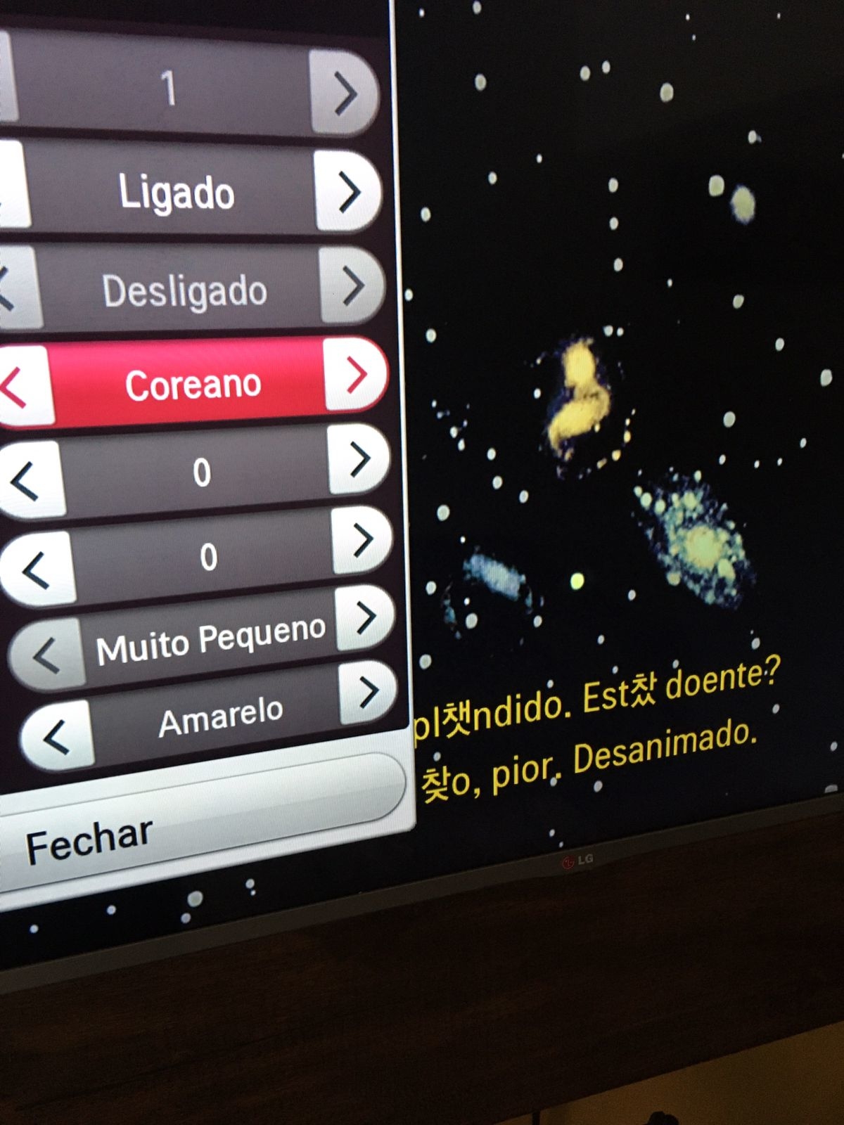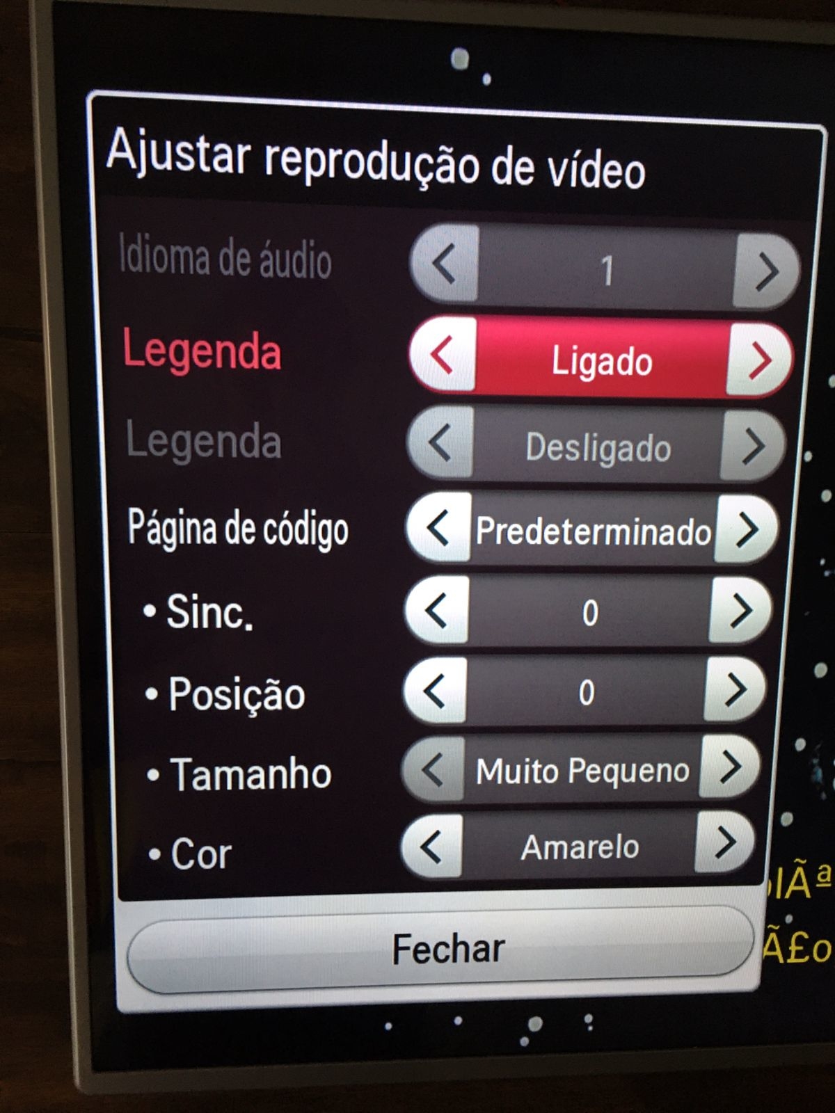 lucasbromer 0 Posted August 18, 2022 Posted August 18, 2022 (edited) Olá, bom dia a todos! Estou enfrentando um problema com minha LG TV para ela não tem o aplicativo, então eu reproduzo pelo DLNA. Bom está tudo bem, menos as legendas. Em todas palavras acentuadas elas ficam com caracteres estranhos. Exemplo: (anexo de imagem) Tem alguma forma de contornar isso? Modelo da minha tv: tv lg 47lb5800-sb Obs: Nas configurações de legendas não tem um menu completo, apenas algumas configurações basicas. Como posição de legenda, ou legenda coreana. E se colocar a legenda coreana apenas o caractere estranho muda o resto continua igual. (não consegui diminuir as imagens, desculpa) Obrigado! Edited August 18, 2022 by lucasbromer Imagem