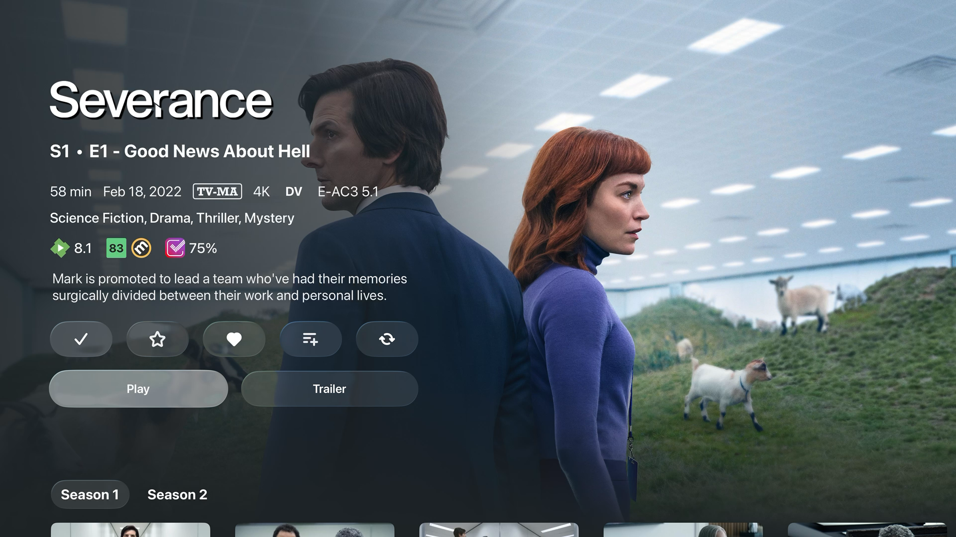 AJV_20 57 Posted December 29, 2025 Author Posted December 29, 2025 1 hour ago, Luke said: Can you please be more specific? thanks ! here are some examples, these are all the same shows but treated differently. The emby one feels less immersive and less appealing in my opinion. the others showcase the artwork more and the buttons are more minimalistic. The emby app feels like a control panel that plays movies while others feel more cinematic and more immersive. I appreciate all the options but sometimes less is better. Don't get me wrong, I'm not saying remove features but when I'm on my tv I'm not there to manage the server, I just want to sit down and relax and enjoy a cinematic experience. Maybe this is just my taste idk