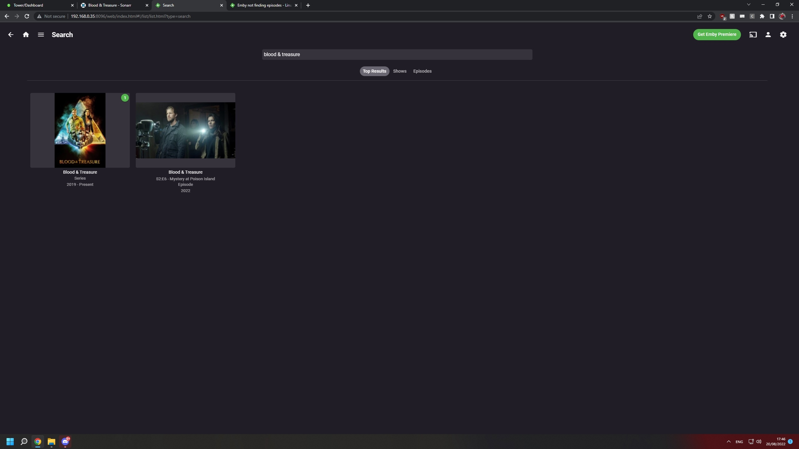gouden 0 Posted August 20, 2022 Posted August 20, 2022 So I have Emby running on unraid, it finds all of my series and movies. Altough there are problems with 2 series, it wont find most of the episodes. The series in question are Blood & Treasure and The Essex Serpent, from the first it only detects the 6th episode of season 2 and for the other it only finds the 6th of season 1. Tried renaming the folders and moving them but no luck. Added folder structures and the logfile embyserver.txt