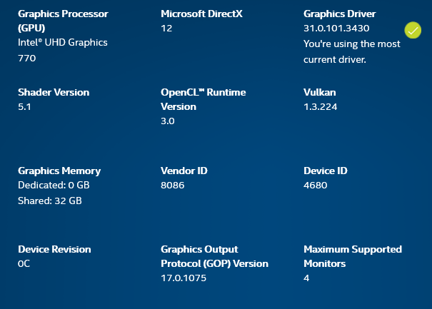 VirulentPip 93 Posted October 2, 2022 Author Posted October 2, 2022 But to answer more specifically, I grabbed drivers listed for the Arc.. Seems to use the same drivers for the UHD770 as those weren't updated. But yeah, confusing that there's no D3D11 option for the A380.