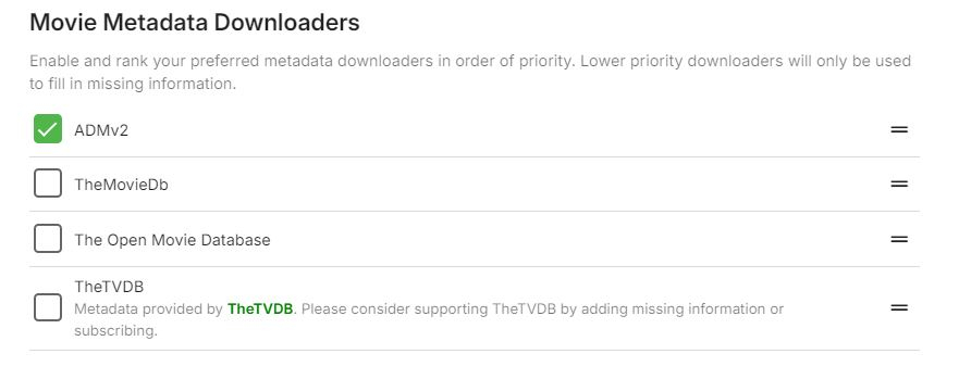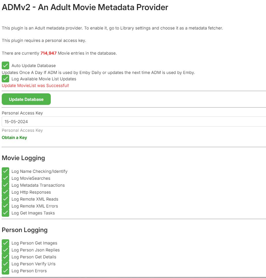 Nepofigist 0 Posted February 6, 2025 Posted February 6, 2025 6 minutes ago, mickle026 said: I have just checked and can access it remotely, It does exist. Maybe it cannot save it? can it write to your cache folder? or Check the "my plugins for emby server" link in the footer of my messages, its on the same server, if you cannot access that then your isp might be blocking you. Try again with a vpn to confim. Thank you, I've succeeded with the access. Now for all movies in my library I've the same log events: 06.Feb.2025 - 18.11.17 [ADMMetadataProvider-GetMetadata-WithYear] ============== NEW SEARCH ============== 06.Feb.2025 - 18.11.17 [ADMMetadataProvider-GetMetadata-WithYear] Independant Year Value Not Supplied! 06.Feb.2025 - 18.11.17 [ADMMetadataProvider-GetMetadata-WithYear] Searchstring: PunishmentfromMorganRainandPaigeOwens_s01_JessyJones_KyleMason 06.Feb.2025 - 18.11.19 [ADMMetadataProvider-GetMetadata-WithYear] This Search found: 0 results. 06.Feb.2025 - 18.11.19 [ADMMetadataProvider-GetMetadata-WithYear] This Search took: 00:00:01.3301122 Seconds