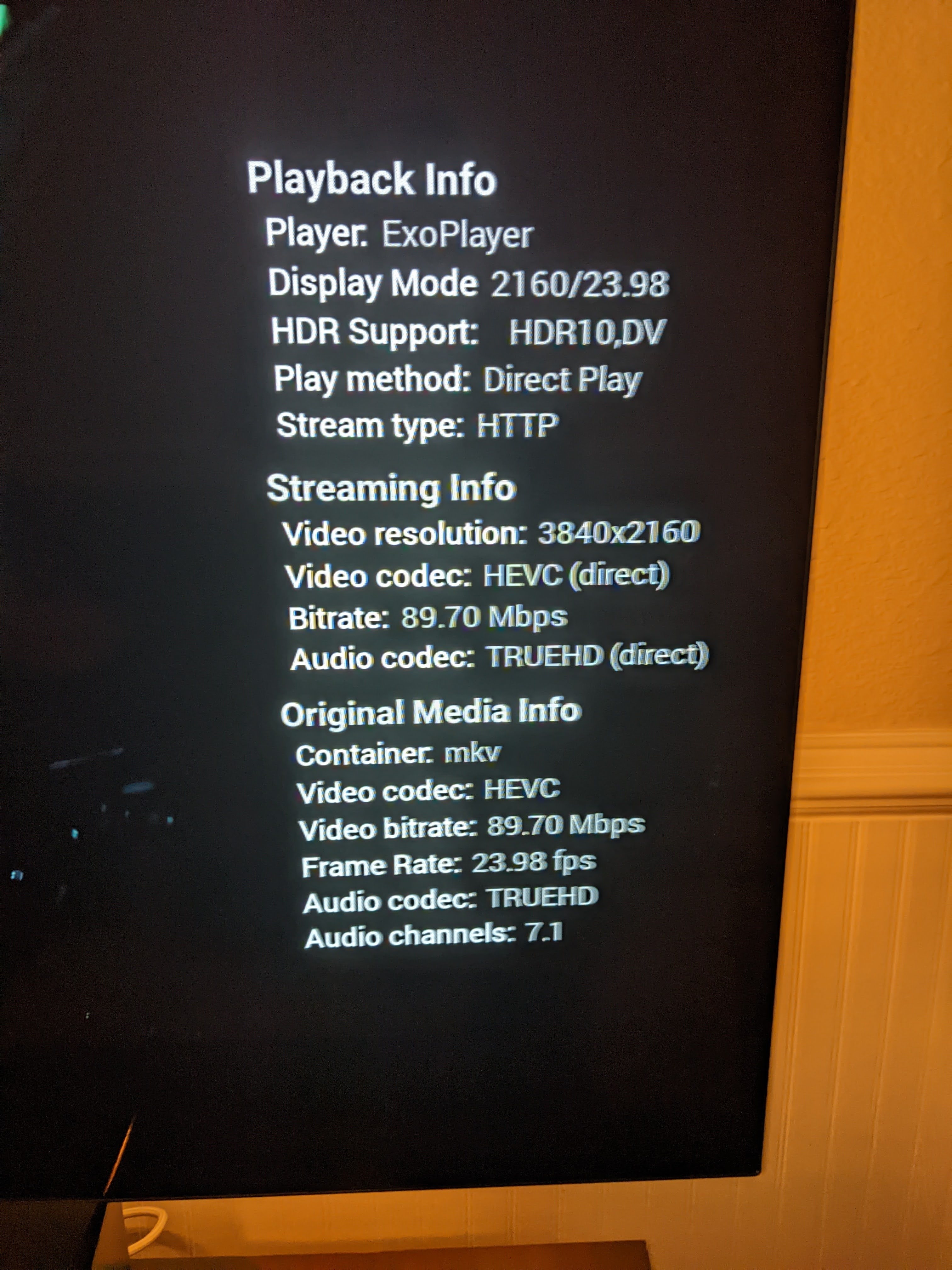 Rcharger96 1 Posted August 28, 2022 Author Posted August 28, 2022 I get the same issue DTS-HD MA 7.1 again higher bitrate lossless audio. I can play AC3 (Dolby Digital) 5.1 ok it seems. I would hope the high bitrate would not be the issue as everything is connected via Cat6 cable and like I said I have no problem playing the same file on Plex and can seek and play wherever just fine.