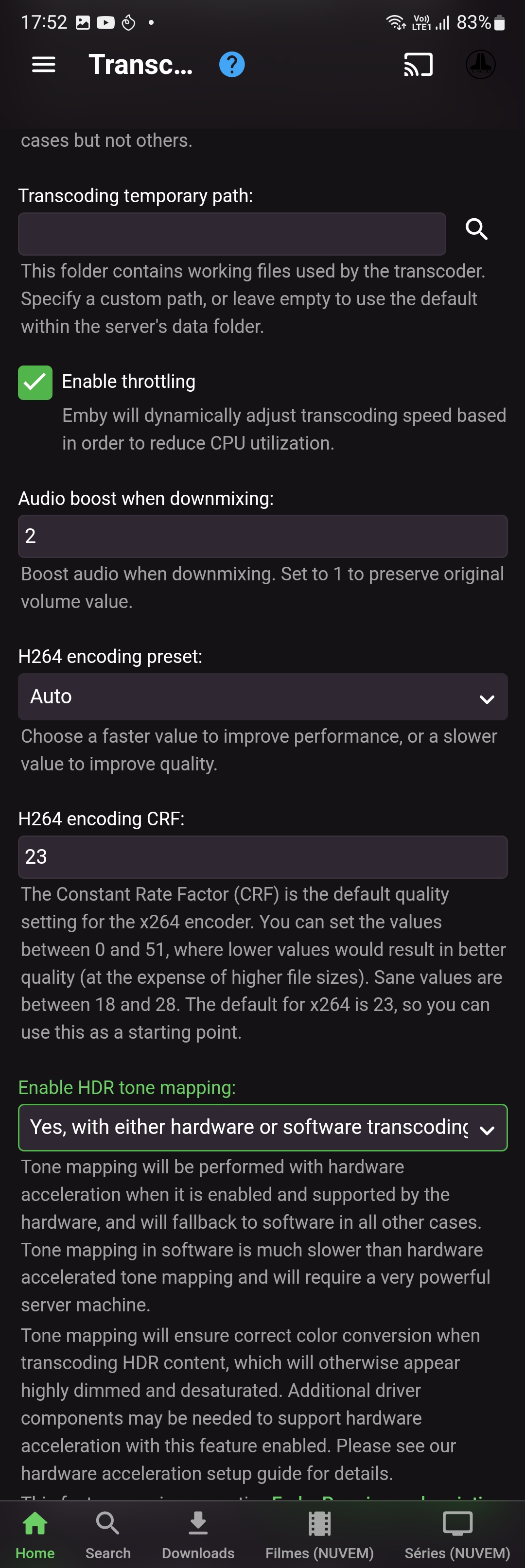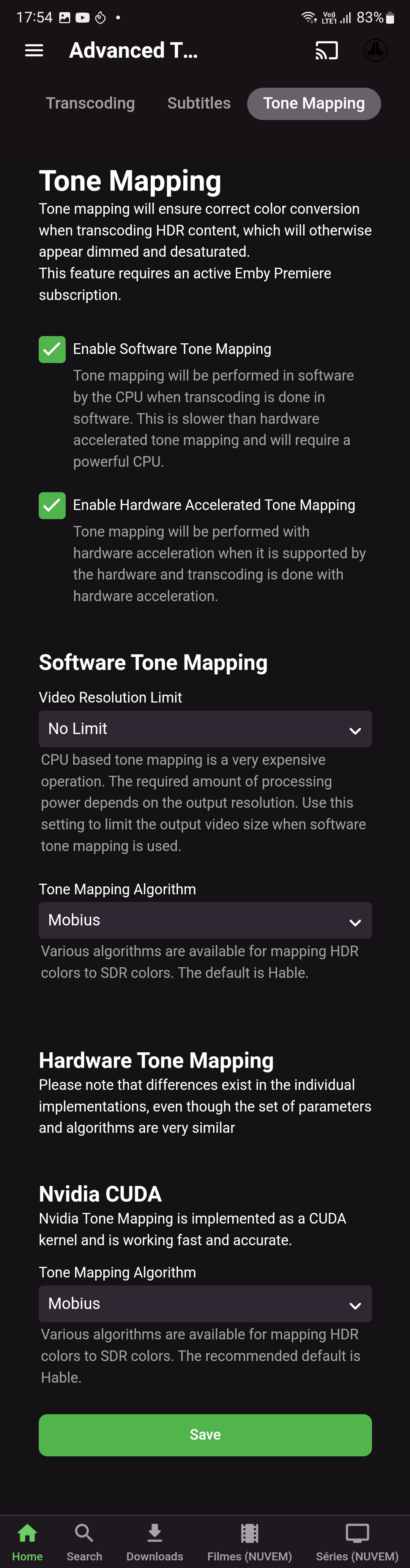 Rolivaras 2 Posted October 10, 2022 Author Posted October 10, 2022 43 minutes ago, Happy2Play said: @RolivarasAmbos os logs mostram que o mapeamento de tons está desabilitado. Qual é a sua configuração de mapeamento de tom no menu Transcode?