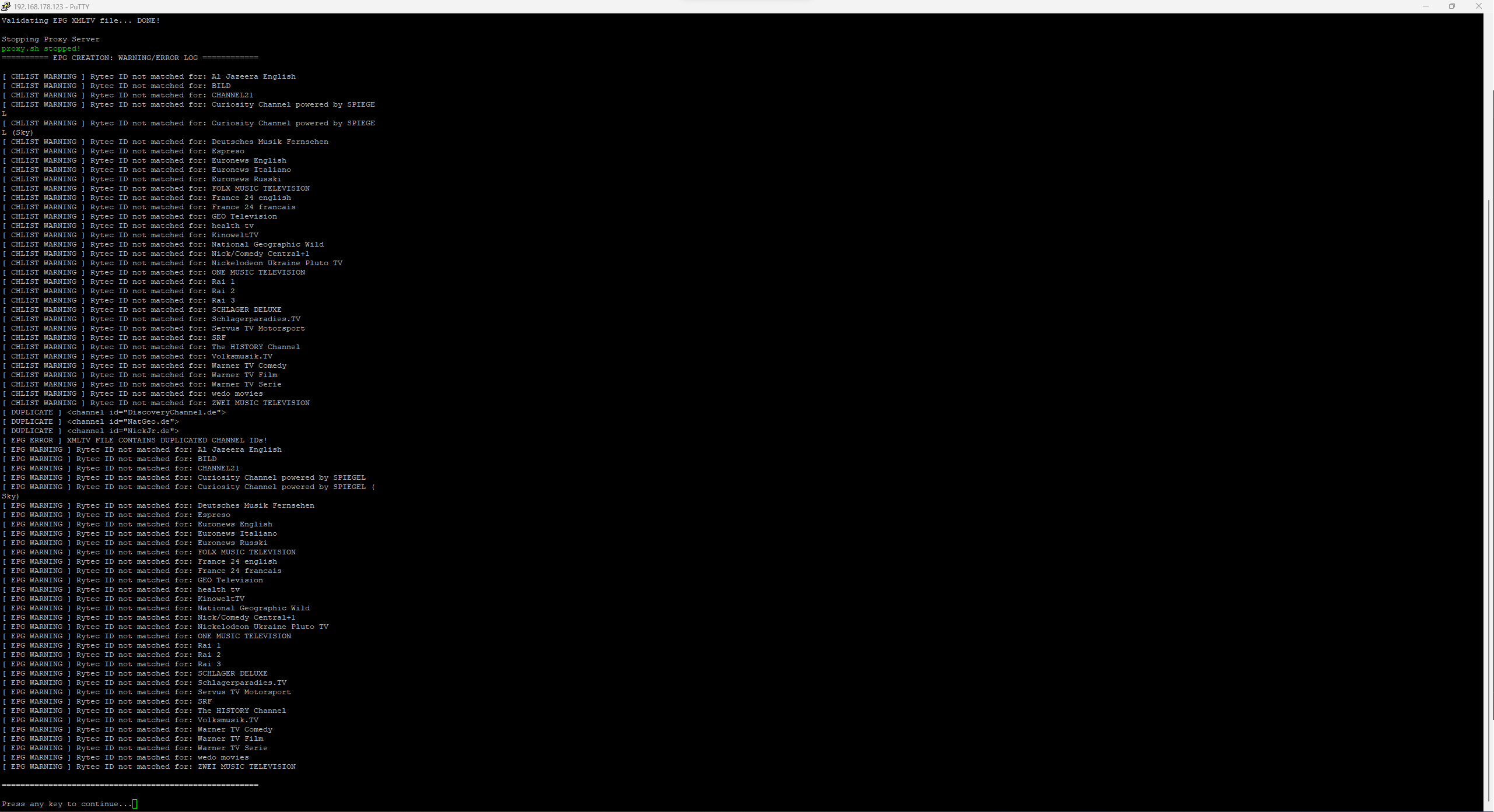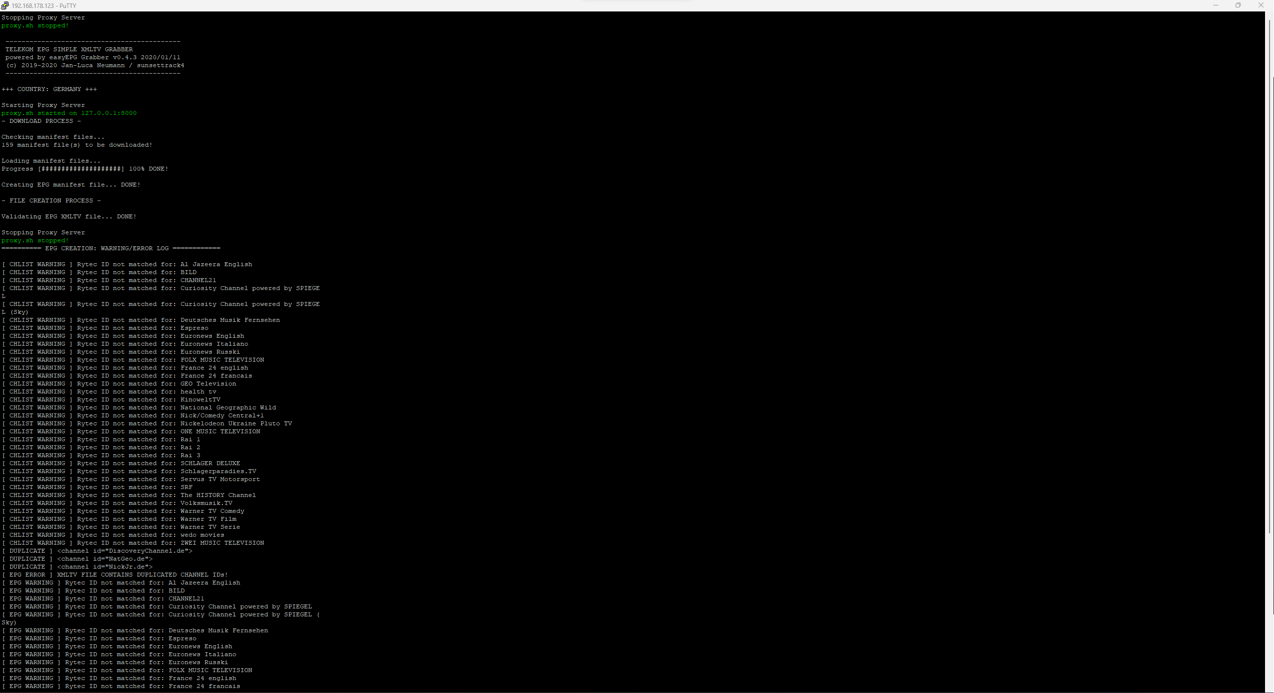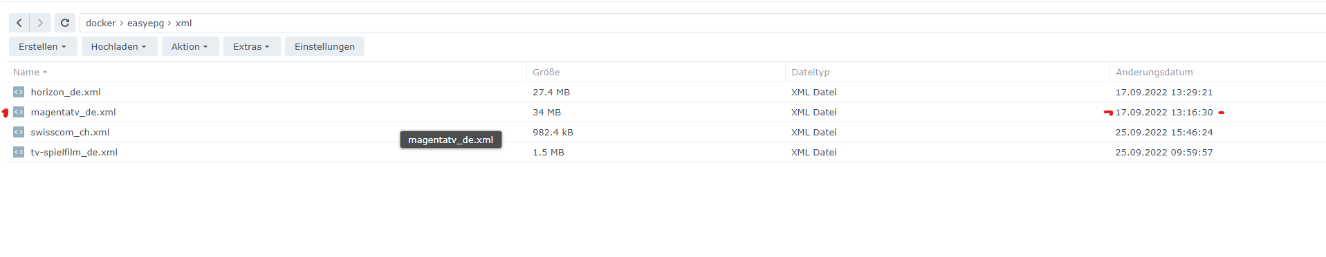 Solution taker1988 21 Posted September 28, 2022 Author Solution Posted September 28, 2022 (edited) Hi Luke, you are right. My XMLs are outdated! Maybe the cronjob isnt working? So i started at least the magenta grabber to grab the newest files, but it did not work, as you can see on my files (date - marked it red). Any ideas how i can fix that? //edit: I found the reason why it didnt work anymore. I had duplicated Channels selected. I deselected them and the scrapping process was working fine than. Now the XMLs are up2date and I got EPG again. Edited September 28, 2022 by taker1988 solution found 1