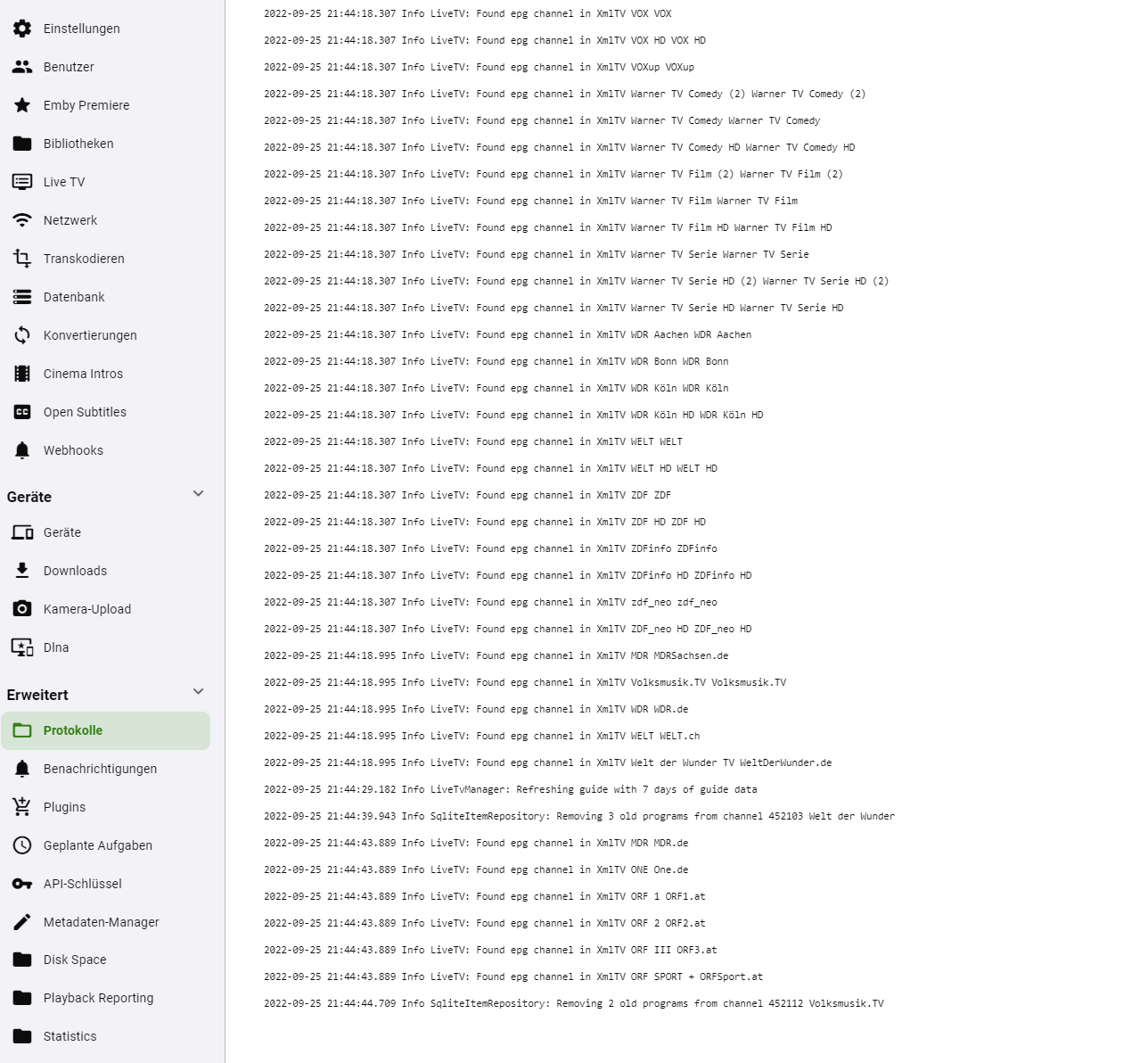 Luke 42077 Posted September 27, 2022 Posted September 27, 2022 On 9/26/2022 at 2:57 AM, taker1988 said: @taker1988 Hi, I´m using a Synology DS720+ with EmbyServer (app, not via Docker). Yesterday I updated it manually with the x64 *.spk file and now I have no EPG anymore. I get the EPG-Data via easyEPG via Docker. The channels via my Zattoo account, which I have integrated via Telerising. That runs flawlessly. In the Emby log I also see that the EPG data is found, just not displayed. Except for 2 channels. I have pulled the XMLs again via the easyEPG script and then restarted the server and manually bumped the EPG data again on EmbyServer.. Paths checked...probably everything is correct. But EPG is simply no longer displayed. Embyversion is the "emby-server-synology7_4.7.6.0_x86_64.spk", Synology has DSM 7 installed. Otherwise Docker, Telerising and easyEPG is also up to date. Does anyone have an idea why this is suddenly the case? I have attached some pictures and the log. PS: Seems to be the same problem as the Threadstarter had, but i can´t fix it with the Solution-Post. I don´t know why. Best regards, taker-` horizon_de.xml 27.39 MB · 0 downloads magentatv_de.xml 33.97 MB · 0 downloads swisscom_ch.xml 982.36 kB · 0 downloads tv-spielfilm_de.xml 1.49 MB · 0 downloads embyserver.txt 3.15 MB · 0 downloads Hi, did you check the contents of the xml to see that it has data for that channel? And if you did, did you check the dates? The most common reason for this is the xml is out of date and all of the programs have aired already. 1