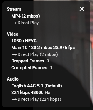 Luke 42077 Posted September 29, 2022 Posted September 29, 2022 Hi, given that we're direct playing, I don't think we can do very much about this. It is most likely an issue in the browser video player. You could check the browser settings to see if hardware acceleration and try toggling that on or off (understanding that changing it might cause other side effects).