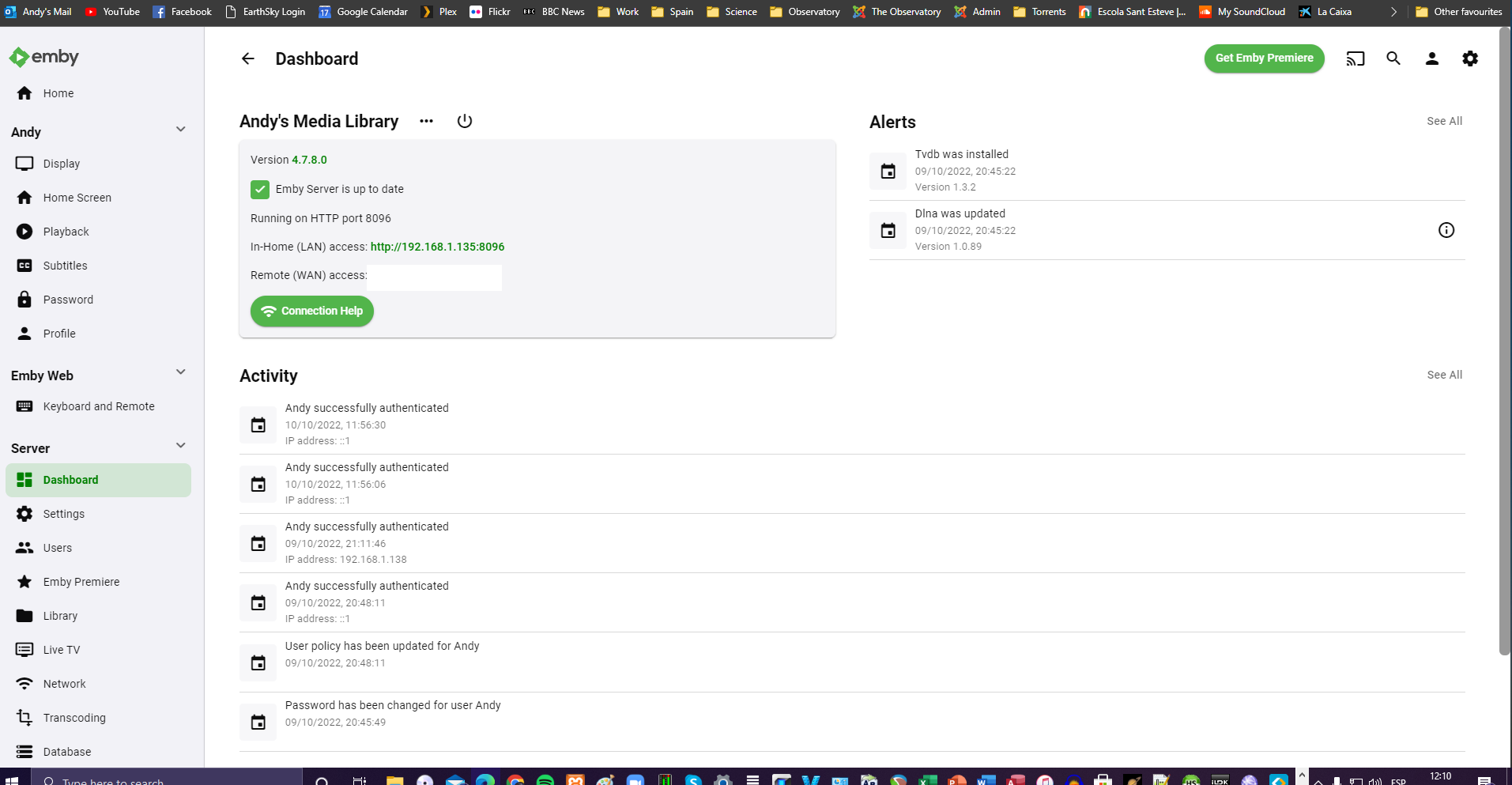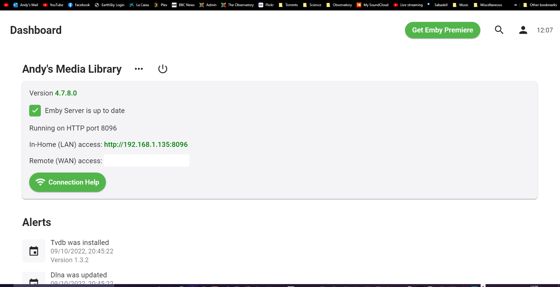 AndyInSpain 3 Posted October 9, 2022 Posted October 9, 2022 (edited) Hi all, Having installed Emby, and run the server a couple of times, I now find that when I click "Configure Emby" the sidebar has disappeared. All I see is the server information (screenshot attached). How can I get the sidebar back so I can configure my server? Many thanks! Andy Edited October 9, 2022 by GrimReaper WAN IP Hidden
