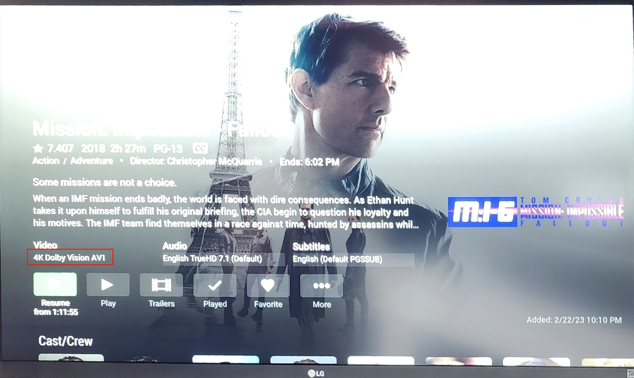 ndfan77 6 Posted July 21, 2023 Posted July 21, 2023 21 minutes ago, lukeoslavia said: Are you saying you are able to direct play AV1 files on the Chromecast with Google TV 4k? This one: https://store.google.com/us/config/chromecast_google_tv?hl=en-US&selections=eyJwcm9kdWN0RmFtaWx5IjoiWTJoeWIyMWxZMkZ6ZEY5bmIyOW5iR1ZmZEhZPSIsImhlcm9Qcm9kdWN0cyI6W1siY0hKa1h6YzRNekpmTXprMU1nPT0iLDEsbnVsbF1dfQ%3D%3D Because everything I have read on those says they don't support AV1, only the HD models support it(that much I can confirm). If the 4K model does support AV1 I would like to grab one of those. Yes, 2160P AV1 direct play seems to be working (rather well) on the Chromecast 4K in the Emby for Android TV Play Store client (v2.0.83g) after following the steps I described previously. But my impression is that it's a house of cards that could blow over pretty easily the next time something else that involves video playback is installed, or the OS is updated, etc... But, I'm going to run with it since the Chromecast 4K isn't my primary streaming device and I'm moving most of my stuff to AV1. Screen shots: