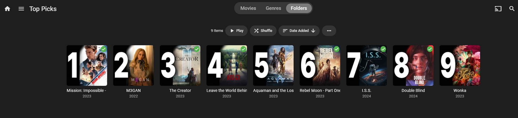 chef 3810 Posted February 20, 2024 Author Posted February 20, 2024 15 hours ago, Kyrunner said: just on the top picks library? or all movie libraries on the entire library