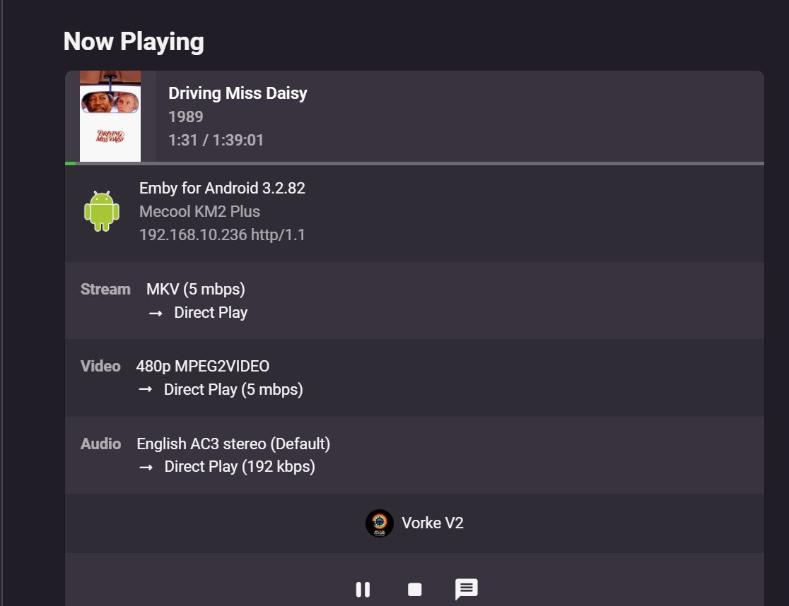 clarkss12 304 Posted October 23, 2022 Author Posted October 23, 2022 A little more information::: Driving Miss Daisy dvd rip plays using Kodi running on same device. However, Plex will NOT play that video either. Here is the stats from Mediainfo app. Also, testing the same video using the ONN Android TV box, the video played perfectly....... Driving Miss Daisy.txt