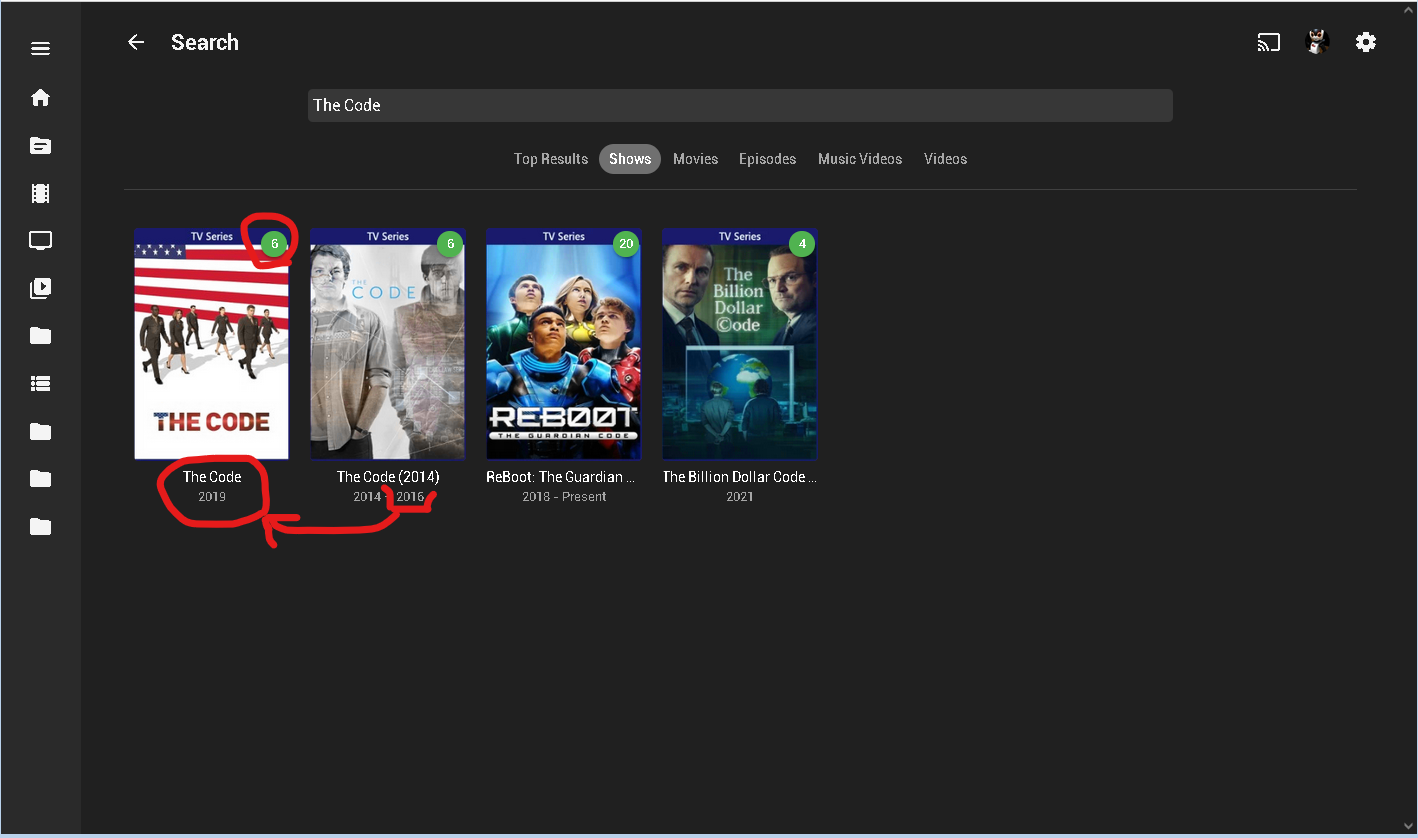 Happy2Play 9780 Posted October 25, 2022 Posted October 25, 2022 With that structure i can see misidentification happening easily as you are working with as series called "The Code" with seasons separated by structure. Since there are multiple shows named "The Code" you may be required to name it "The Code (2014)". I would expect issues like this for all same named shows. But what is your library metadata provider order? Do you have "Automatically merge series that are spread across multiple folders" enabled in library settings? 1