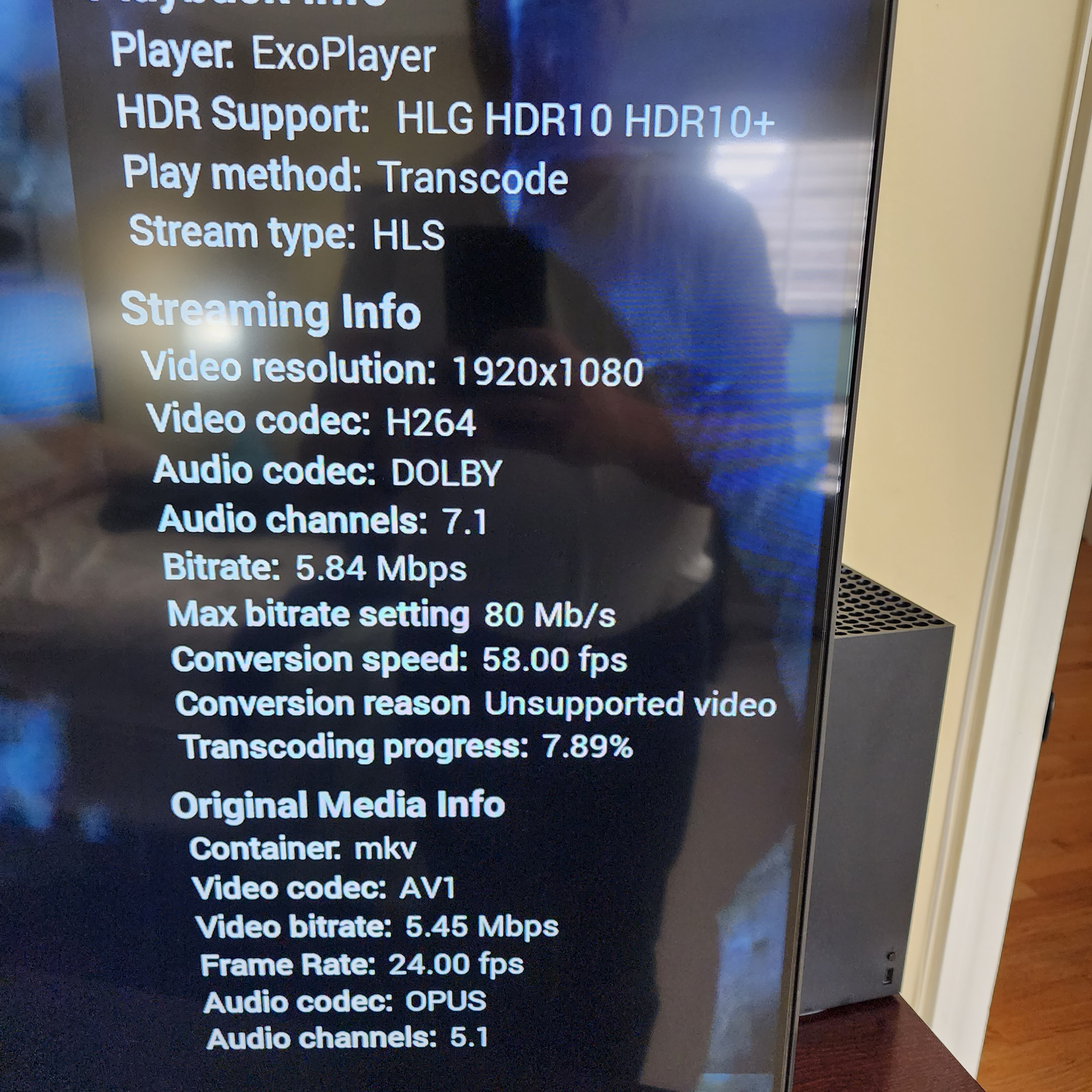 tnowakow 0 Posted November 18, 2022 Author Posted November 18, 2022 On 11/17/2022 at 1:15 PM, Luke said: Hi there, when it transcodes, did you explore the stats feature in the video player to learn the reason why? I did, the server says 'converting video to compatible codec' and the stats for nerds says conversion reason: unsupported video. Attaching two pictures where one shows the transcode, and the other shows the direct play after I change the user setting to not allow transcoding/conversion