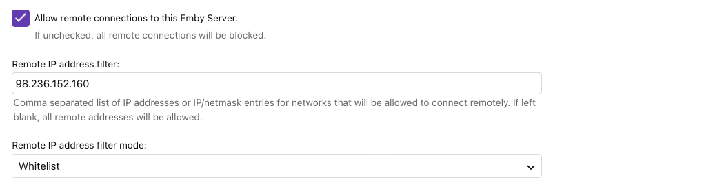 Waldoo 14 Posted December 14, 2022 Author Posted December 14, 2022 (edited) When i turn off wi fi and try to access emby on my phone it lets me in! I tought it would block access exept for that ip in the screenshot? Edited December 14, 2022 by Waldoo