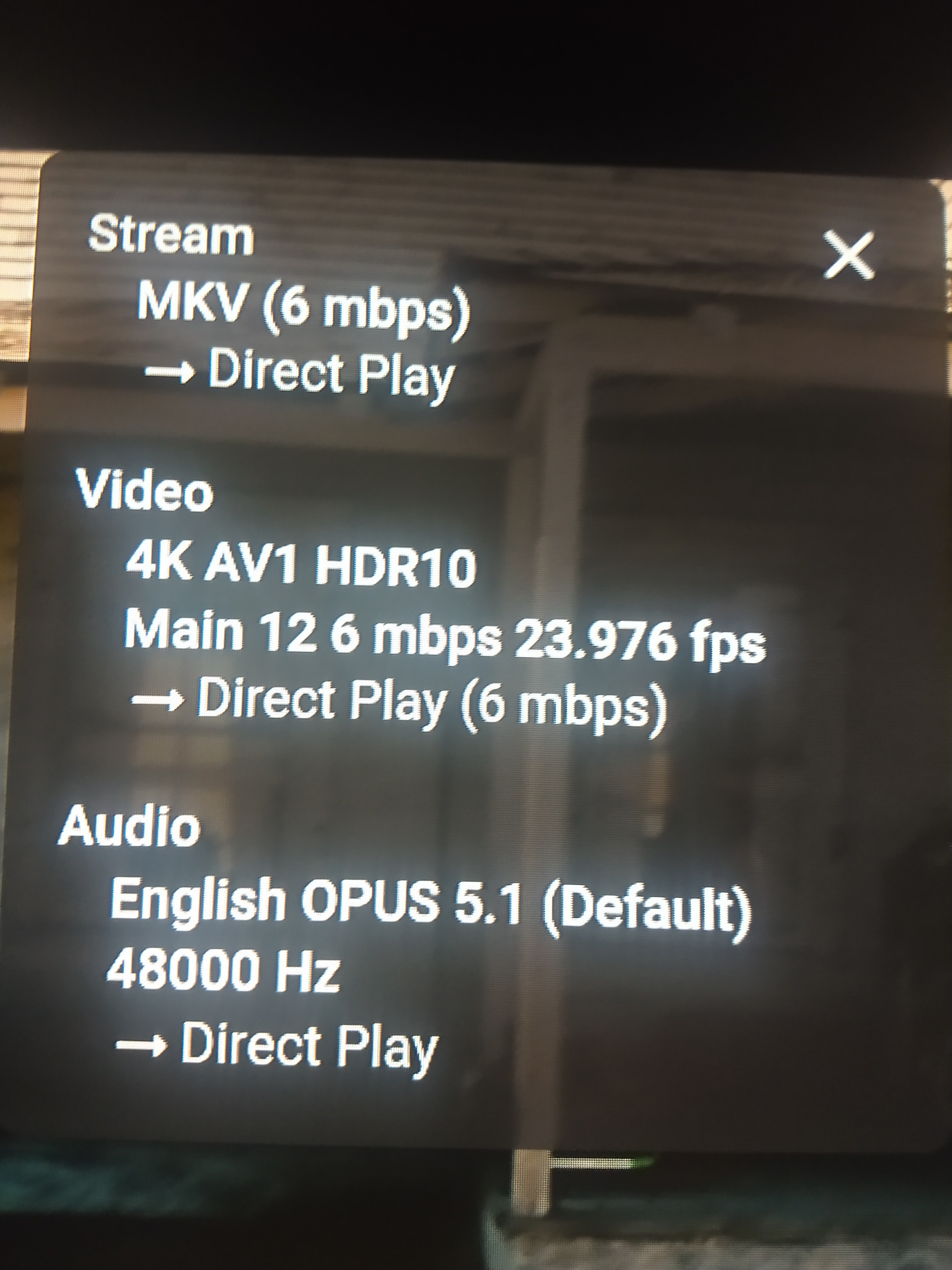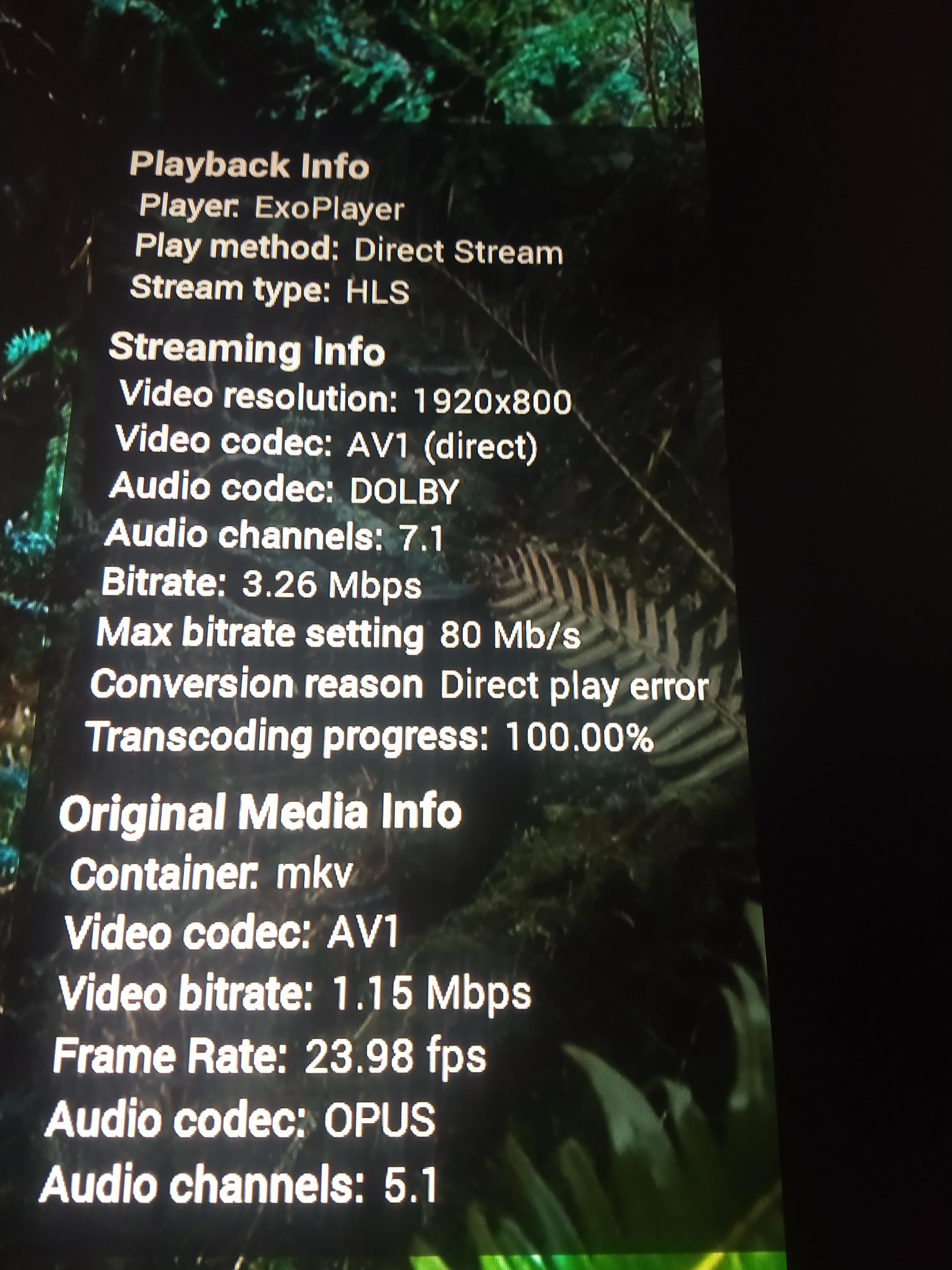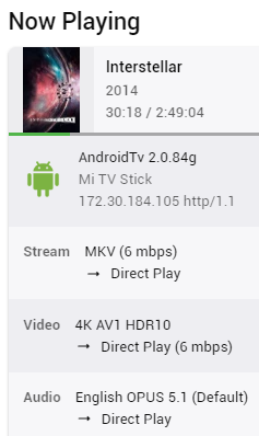 hbbs 8 Posted December 18, 2022 Author Posted December 18, 2022 1 minute ago, VirulentPip said: It is? Are you sure... Last I checked the other day it still Software Decodes when using the Emby Android app cause can see noticeable stuttering (on my Fire cube Gen3) when compared to using Nova Video Player which Hardware decodes. I let running for over 15 minutes. When using the Emby Android TV app within 3 minutes of playing it changes from Direct Play to Conversion on stats for nerds That wasn't the case using the Emby Standard app for Android. Since you mentioned. I'm going to look for a 4K AV1 file to see if it will work. I don't own a 4K TV. But I think it will be a good test I'll report back as soon as possible.
