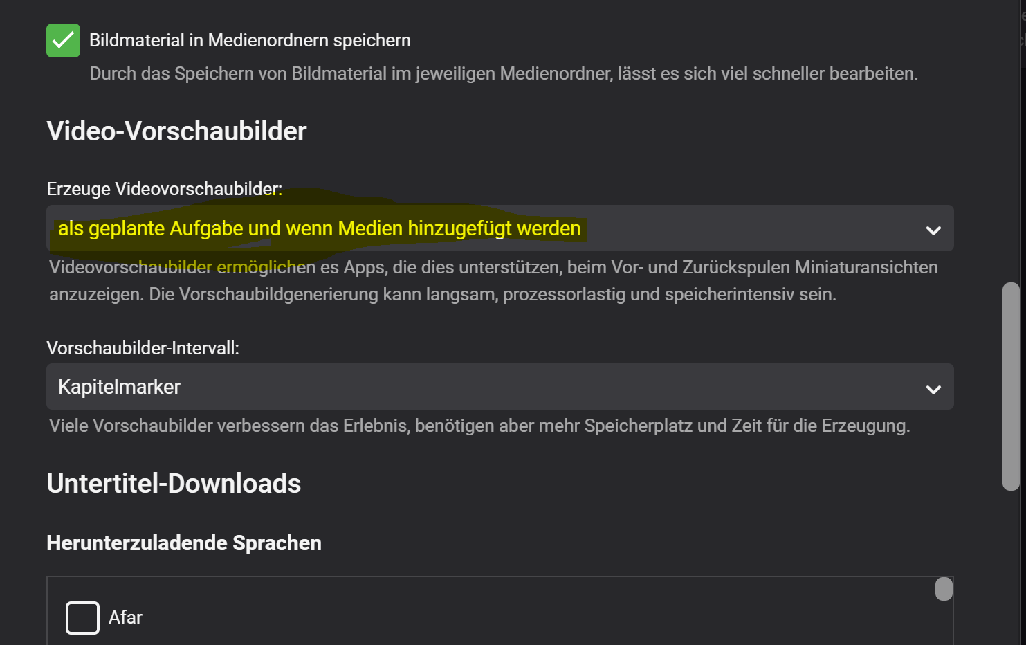 Florian2000 17 Posted December 29, 2022 Author Posted December 29, 2022 Just now, Eigeplackter said: hehe...ja, Deutsch geht mir leichter von der Hand ad a) ok, also liegt es an der nfo Datei...kann ich einfach eine leere nfo Datei ablegen? Wird Emby in weiterer Folge davon abgehalten ein Vorschaubildchen aus der Videodatei zu ziehen? ad b) Es ist so eine mixed Bibliothek wo ich die Erkennung schon manchmal haben möchte...aber bei sagen wir YouTube Videos brauche ich die Erkennung einfach nicht und da ist sie störend. Da reicht mir das Vorschaubild und ein Text (Dateinamebezeichnung). Klar ich könnte jetzt die Bibliothek auftrennen...aber das wollte ich eigentlich vermeiden. Ich werde mal den nfo Ansatz probieren ob das für mich funktioniert. Danke für den Tipp!