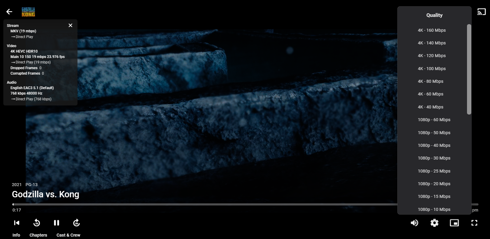 acer1204 3 Posted January 6, 2023 Posted January 6, 2023 My video is name is S01E01 - 4K.mkv format: MKV (17 mbps) Video 1440p H264 High 50 17 mbps 23.976 fps audio Und AAC stereo (Default) 192 kbps 48000 Hz but play in any browser, the max quality is 1080p 60, not show any 4k solution. when i use phone or tablet to play it, the max quality still is 1080p 60. How to config emby that it can play 4k video? my lan network is use 2.5g ethernet.