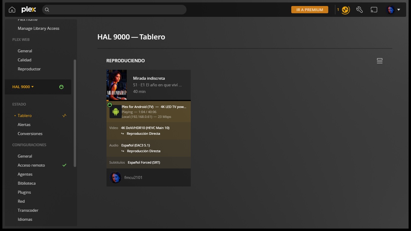 Fabian2101 23 Posted January 10, 2023 Author Posted January 10, 2023 1 hour ago, neik said: Thank you, for checking this. Not every Netflix movie/show with DV8 causes this, it's a bit of a random issue unfortunately. There has to be a solution as the competition plays the HDR layer just fine - didn't test DV layer though as the test was done on my smartphone. You are right, I turned on my Plex server, which had been turned off for several months, I began to carry out the tests with Plex and I am surprised that with the Plex server and its official client for Android TV all the content that video tracks containing Dolby Vision and HDR10 work and play without any issues or errors, and with full direct playback without any transcode. It is that I, a few months ago, managed to solve the problem of jumps and jerks in the images when playing with Emby on my Philips OLED873 television, forcing my Emby server to always send HLS transmission, instead of direct transmission. I also see that Emby does not inform that the transmissions contain Dolby Vision and HDR10. Plex now does report it on the dashboard. This new issue with my Emby server may force me to return to Plex. I am attaching all the screenshots of the dashboard of my Plex server, where you can observe and check that the playback with Netflix content works on the Plex server: 1