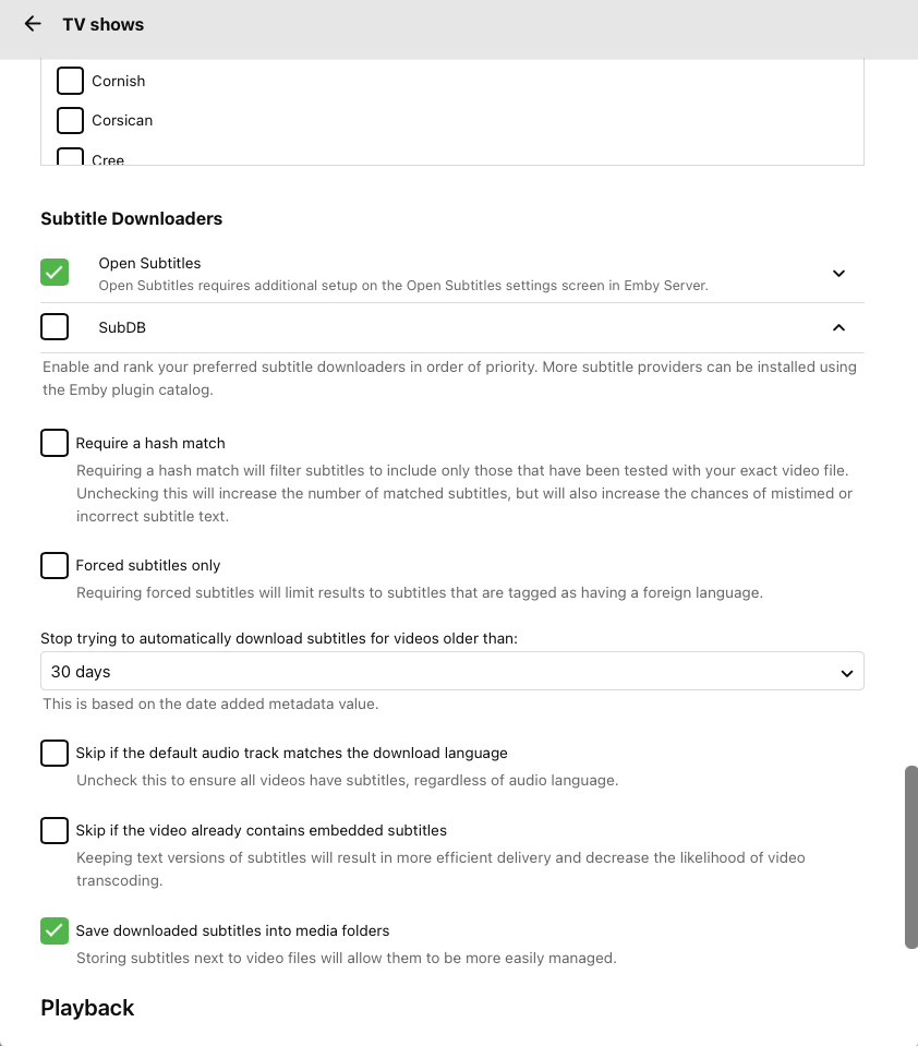 benoitvinc1 9 Posted January 9, 2023 Posted January 9, 2023 I'm running Emby server 4.7.11.0 and it seems that subtitle download is not working. I have the open subtitle plugin installed and configured. I have setup my TvShow library as per the attached screenshot. When I manually start the Subtitle download schedule task is runs but nothing happen. If I click on Edit subtitle on a video and click find, I get the following message : No results found. Have you configured subtitle downloading? I have also uploaded the Emby server log server logs. embyserver.txt