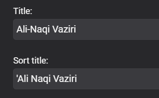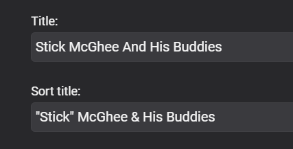 Happy2Play 9780 Posted January 20, 2023 Posted January 20, 2023 Yes the sorttitle is moving items do to characters precede letters. But @Lukewould have to comment on stripping punctuation, but do not know how many artists have punctuation as proper name. Not sure why Music acts differently than other content types here as they match the two fields by default. But looks to be how Discogs adds information. "Stick" McGhee & His Buddies | Discography | Discogs Stick McGhee & His Buddies - MusicBrainz 'Ali Naqi Vaziri | Discography | Discogs علی نقی وزیری - MusicBrainz