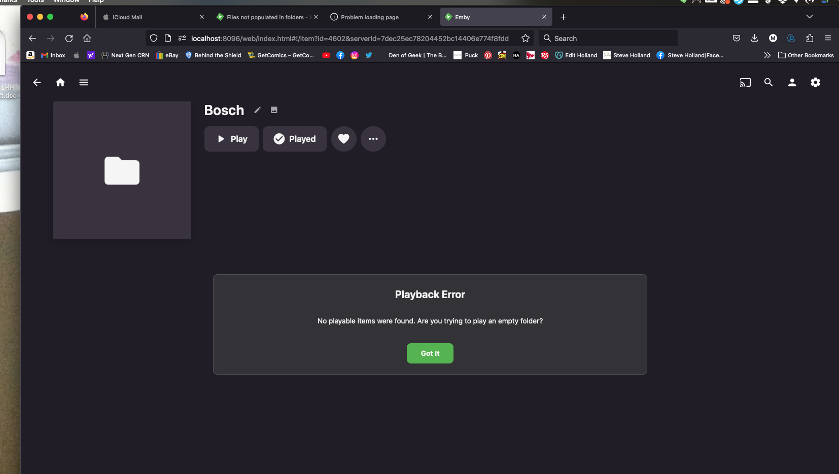 mstradford 0 Posted January 21, 2023 Author Posted January 21, 2023 I did just add the main folder. The show folders are listed by name. For example, there's a 'Bosch' folder within the 'TV' folder. There's a sub folder with each season (season 1, season 2, etc.), within that sub folder are the individual episodes for that season. I've included a couple of screen shots to further illustrate.