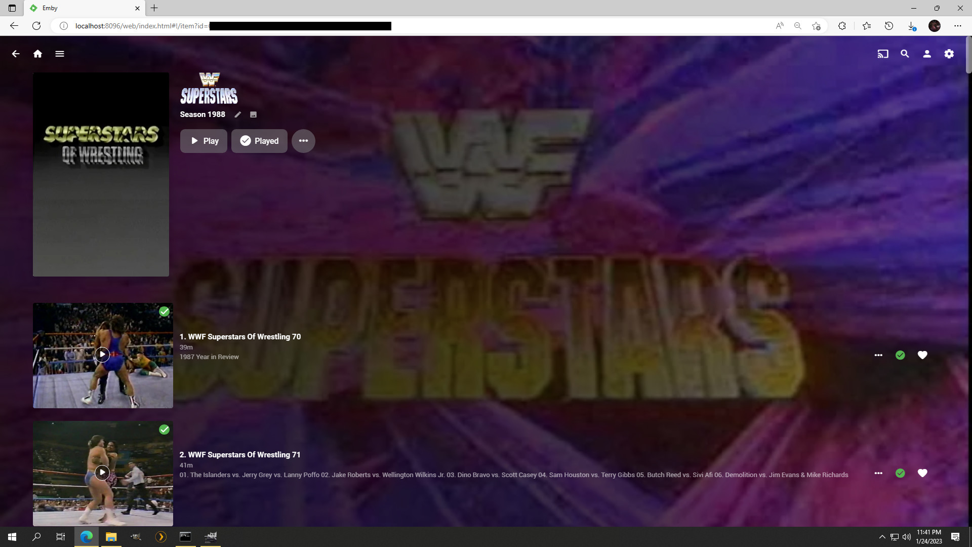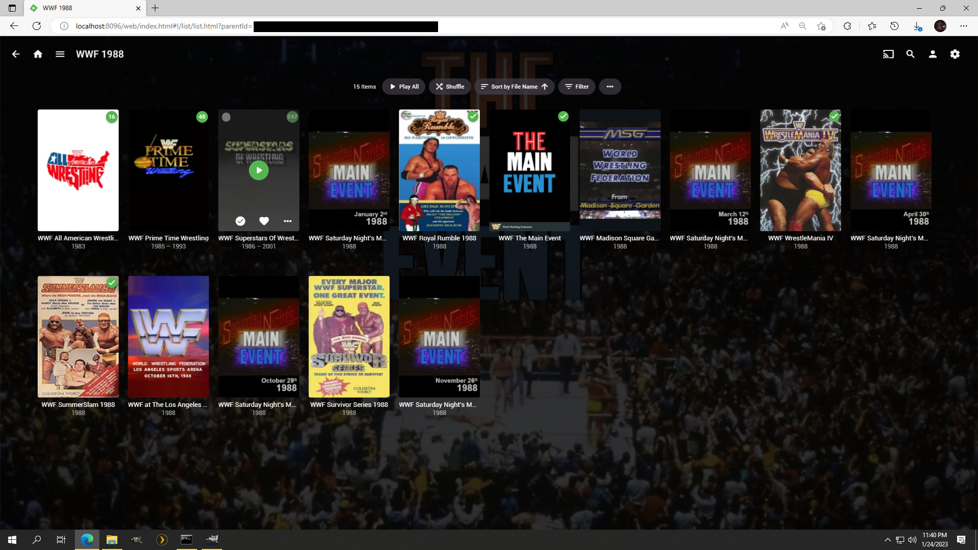 RIP314 2 Posted January 25, 2023 Posted January 25, 2023 (edited) So I'm trying to find a way to jump directly to a specific season of a show without going through the TV Show details screen. I want to end up directly in the season. Let me explain why I want this. I have a standalone library for all my pro wrestling content. In my opinion the best way to organize wrestling is Promotion\Year\Content (ie WWF/WWF 1988/WWF WrestleMania IV[*movie]). Now I'm using a mixed library in order to keep all the TV shows (i.e. Monday Night Raw) and "PPVs" (one-off events which show up as movies i.e. WrestleMania) in the same location. Here is what I'm working with right now. So far so good. The one problem I have and it is just one of convenience is that when I click on a TV Show (i.e. WWF Superstars Of Wrestling) I get sent to the TV Show details screen as you would expect... but is there a way instead to just link directly to the season corresponding with the year (i.e. 1988). Meaning if I go into the WWF 1988 folder and click on the Superstars Of Wrestling tv show I get sent directly to here... I've tried a few different things to solve this, but haven't been able to figure a work around. I have most of my TV shows in their own separate directory (the typical Television/Show Title/Season format) on my PC and I use mklinks (symlinks) to make them appear in the YEAR folders they belong to. The way I choose to do this is to make a folder with the title of the show inside the YEAR folder (i.e. WWF/WWF 1988/WWF Superstars/), in that new TV show folder (WWF Superstars) I make a symlink directory junction to the season folder corresponding to that year as seen below. mklink /J "...Television/WWF Superstars Of Wrestling/Season 1988" "...WWF/WWF 1988/WWF Superstars Of Wrestling/Season 1988" Now I've tried to modify these symlinks to achieve my goal by linking more directly to the season folder you can see this below. mklink /J "...Television/WWF Superstars Of Wrestling/Season 1988" "...WWF/WWF 1988/WWF Superstars Of Wrestling" Doing this gave me the same result, when I click on the show it still goes to the TV show details page and not the season page with an additional caveat that it now makes my library appear to have duplicate seasons. You can see this above in image 4 where "Season 3" is exactly the same as "Season 1988" even all the videos in both seasons link to the same exact filepaths. I'm pretty sure there is no work around for this, but I figured I'd try and see if anyone had a clever idea. Thanks for reading...stay cool. Edited January 25, 2023 by RIP314 corrections