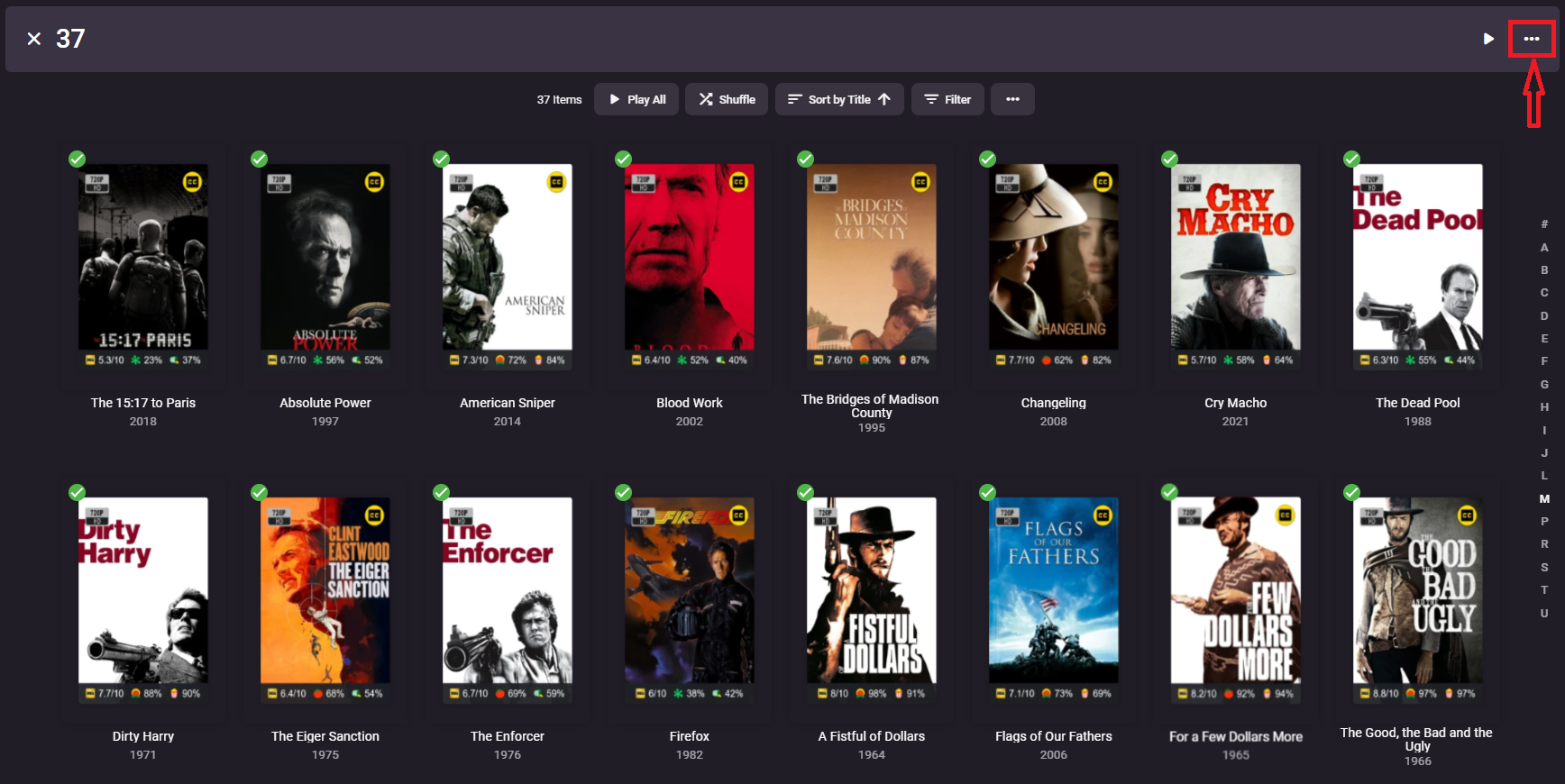 Solution GrimReaper 4740 Posted January 31, 2023 Solution Posted January 31, 2023 (edited) 14 minutes ago, jglazer63 said: I select one movie and choose his photo in the actor list it shows 12 of the 100+ movies. How do I see the rest? Click on header Movies or See All . 14 minutes ago, jglazer63 said: Given that it shows all the movies, how could I add all of these to a single collection? It is a myriad of mouse clicks (or remote clicks) to add one at a time. Multi-select (select individual movies or select first movie>Shift-click last movie)>three-dot menu top-right>Add to Collection. Edited January 31, 2023 by GrimReaper 1