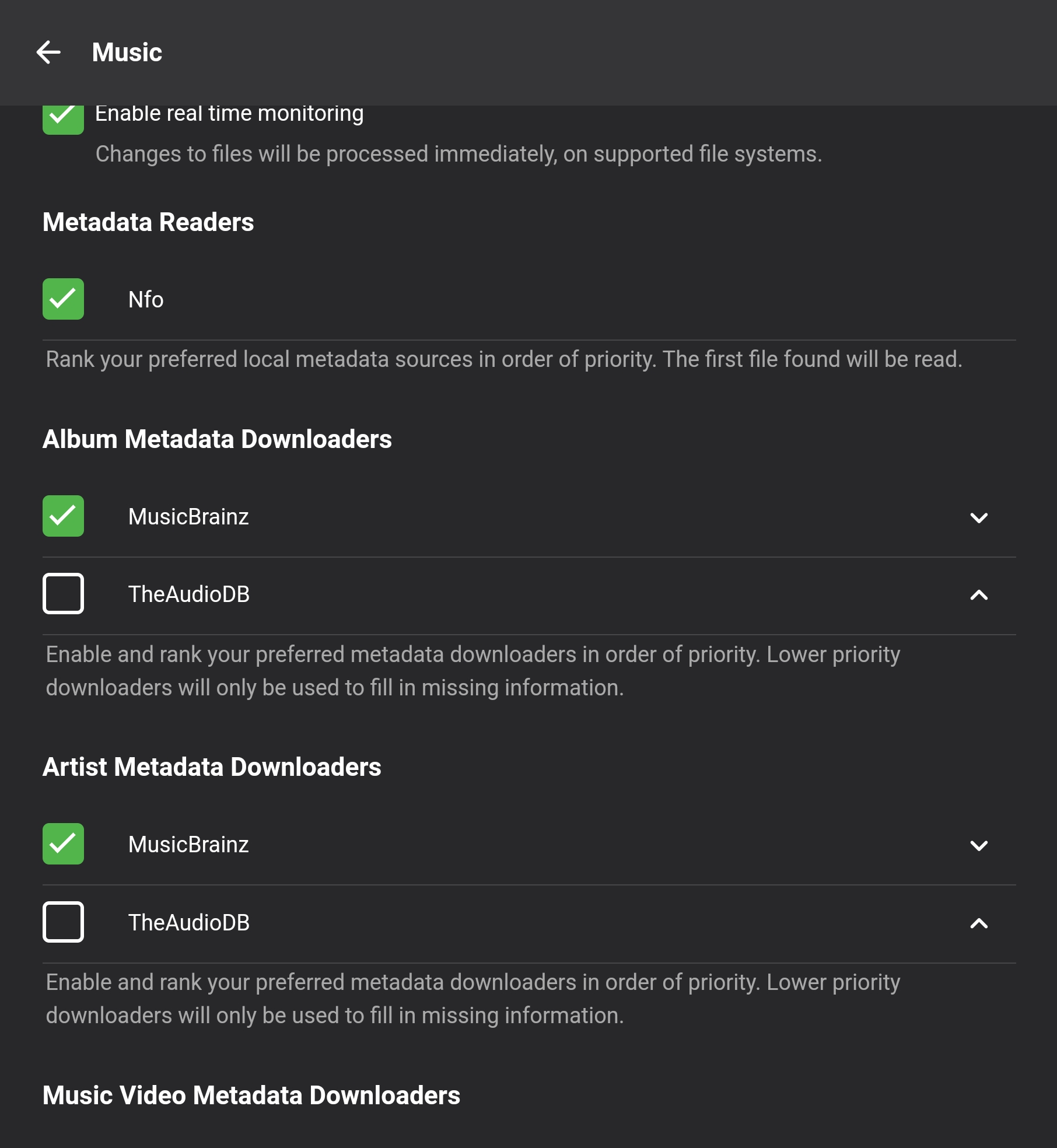 sam089 0 Posted January 31, 2023 Posted January 31, 2023 Hey all. So I'm very new to emby. I synced my folder with all of the flac files to emby and I'm not seeing any artwork. I don't have a computer unfortunately at the moment. I looked last night at a post and tired find something useful about it to help but couldn't figure it out. I've got the server on as well using Android. My android tv has the same setup with the files showing just not metadata. I tried usjng a fetcher and without to no avail. Can someone help ??
