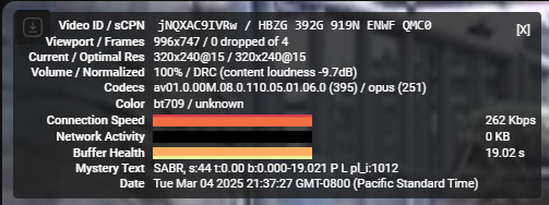Q-Droid 989 Posted March 5, 2025 Posted March 5, 2025 6 hours ago, Scobra said: I have the same problem. Emby simply uploads roughly the same speed as video bitrate meaning as soon as upload speed drops for whatever reason, it starts buffering. I guess the best sort of solution I had in mind was something like YouTube's "Buffer Health". Rather than just having a second or two buffer, something like 20 would be nice. I should also mention, since the upload speed is limited to the video bitrate, it is also impossible to play a video at more than 1x speed without buffering. Emby does not restrict or manage the "upload" speed. It uses the full bandwidth available to stream the video and the limits are only for the bitrate of the stream itself, not the transfer rate. If you're seeing a transfer rate that is the same as the bitrate that is a limitation of the network itself at the server, the client or somewhere in between. It also means the stream bitrate should be reduced because a hiccup in the transfer will cause playback problems. 1