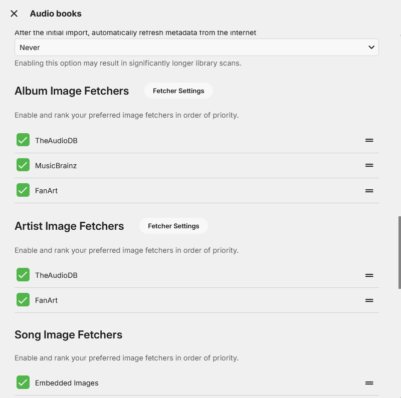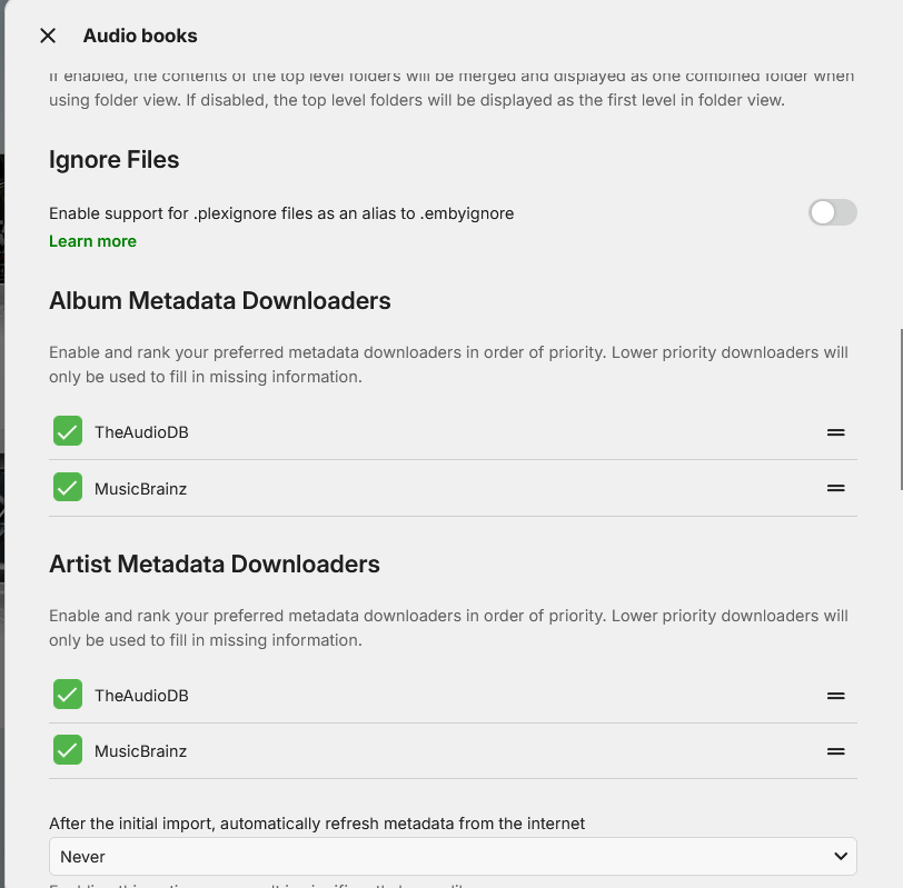 Luke 42077 Posted October 13, 2025 Posted October 13, 2025 4 hours ago, Moondoggie28 said: Was this something that was ever resolved? I know that I am digging up an article that is a couple of years old. However, I am having a hell of a time trying to get my album artwork to look correct, as well as pulling any and all metadata for the authors of the books. I have been trying to get the previously mentioned Harry Potter series up and running, however, it is pulling in a random series album artwork. Whenever I attempt to import the files, it starts to look like this Hi there, how have you configured the options on the library?