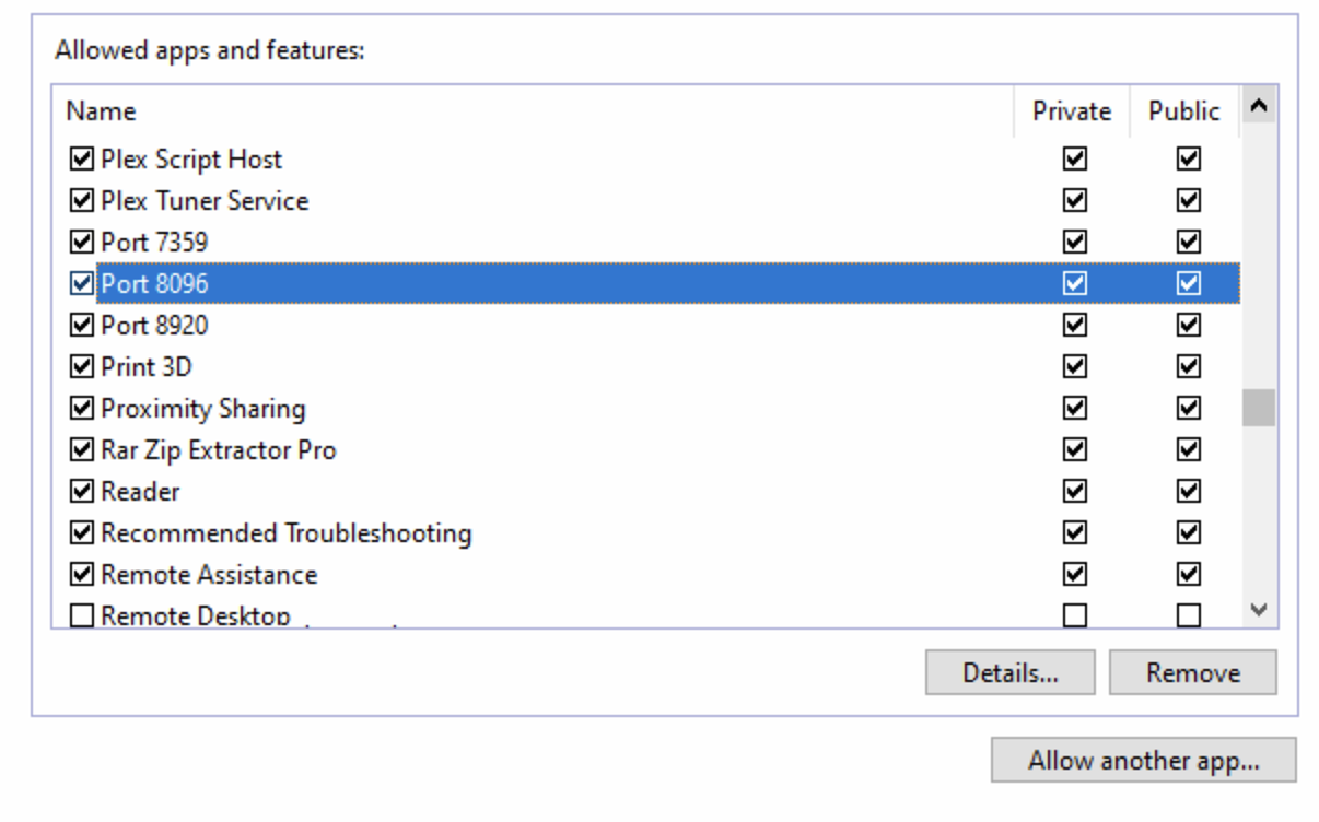 jtbreen80 1 Posted March 10, 2023 Author Posted March 10, 2023 6 minutes ago, GrimReaper said: Good. And the LAN address shown in your server Dashboard is the one you tried to connect from client apps? In your firewall, have you ensured that rules are for Private networks, not Public? If you temporary disable firewall completely, are you able to connect? Yes, using the LAN address from the dashboard. And yes, it's set for both pub and private. I disabled the firewall and was able to login from my ATV. (Didn't try this before because it specifically said not to in the troubleshooting guide)