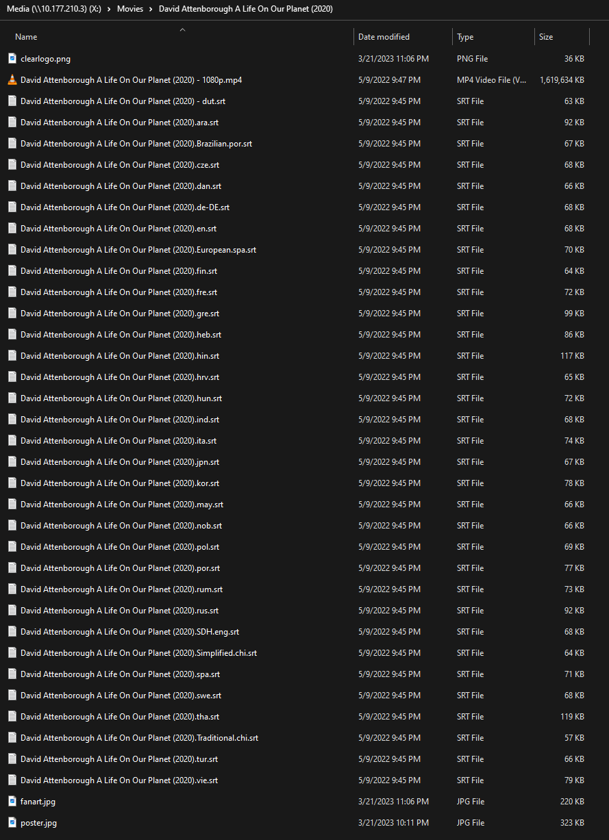 Flying_Zer0 1 Posted March 22, 2023 Author Posted March 22, 2023 (edited) Thanks for the tip, Will try that. If I have something with say a 1080p and 4k version would I need to copy and rename all the subtitle files and have duplicates then? So like David.... (2020) - 4k.mp4 David....(2020) - 4k.ara.srt David.... (2020) - 1080p.mp4 David....(2020) - 1080p.ara.srt Just want to make sure, highly considering using Emby instead of plex at this point but subs is a big one, My roommate has pretty bad hearing and uses subs on everything we have. Thank you for helping! Edited March 22, 2023 by Flying_Zer0