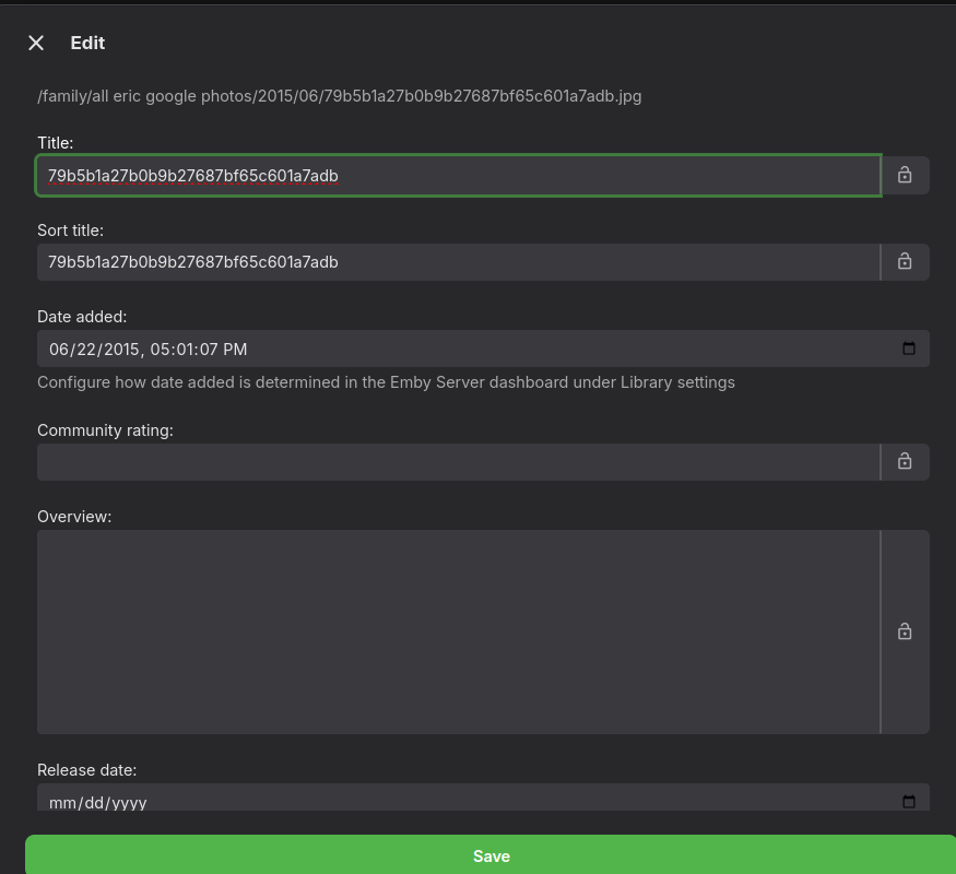 EricKnaak 4 Posted May 29, 2024 Posted May 29, 2024 Actually it doesn't seem to matter what file it is it seems to be an issue at the end of the sort by "Title" for photos regardless of ascending/descending order. first screenshot is for meta data that when you click on that thumbnail it brings up image "065.jpg". reverse sort and look at meta data for that thumbnail is the same but this time it's for the correct picture "79b5b1a27b0b9b27687bf65c601a7adb.jpg". when in reverse order the thumbnail in question is #58 in the grid. embyserver.txt