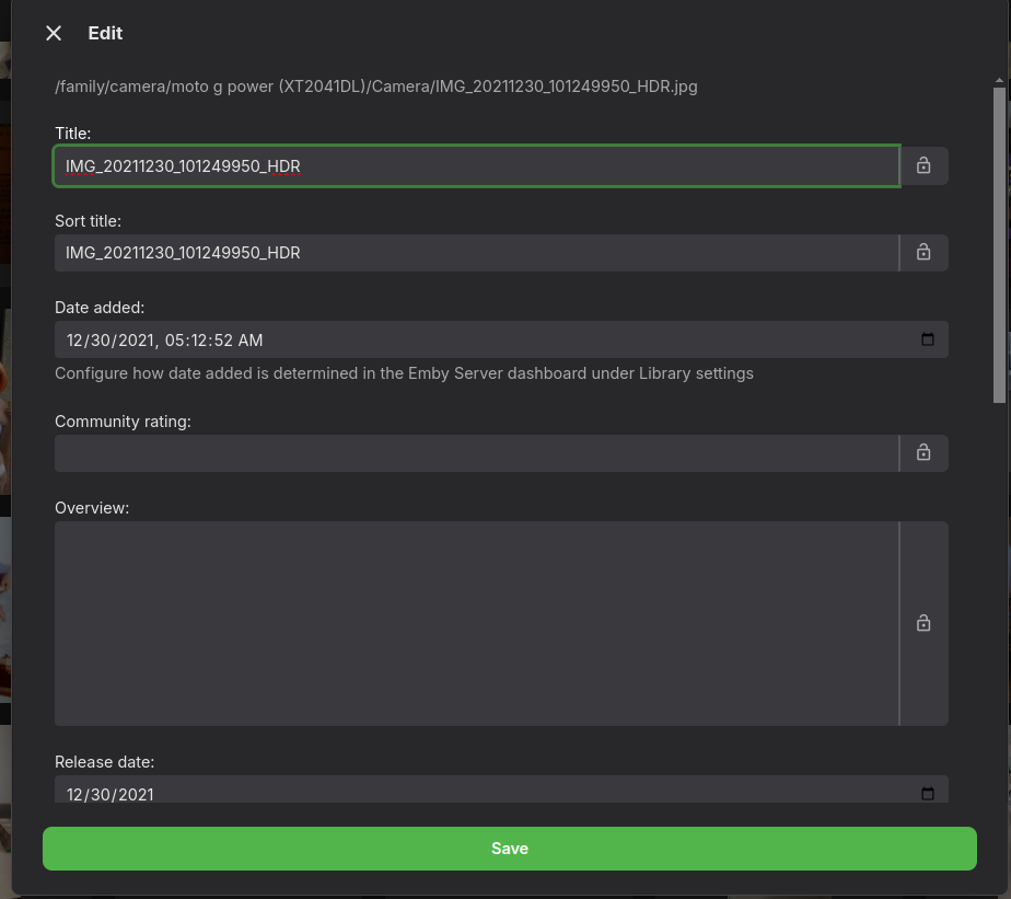 EricKnaak 4 Posted May 30, 2024 Posted May 30, 2024 On a slightly related note. On Emby Android app version 3.3.95 the wrong thumbnail shows at the end of the ascending grid of photos for some pictures. Meta Data shown in Link. Picture name is IMG_20211229_120405733_HDR. I "play"the image the same way as before "clicking" on the library to open it, and then photos, then "click" on the thumbnail. Android 14.